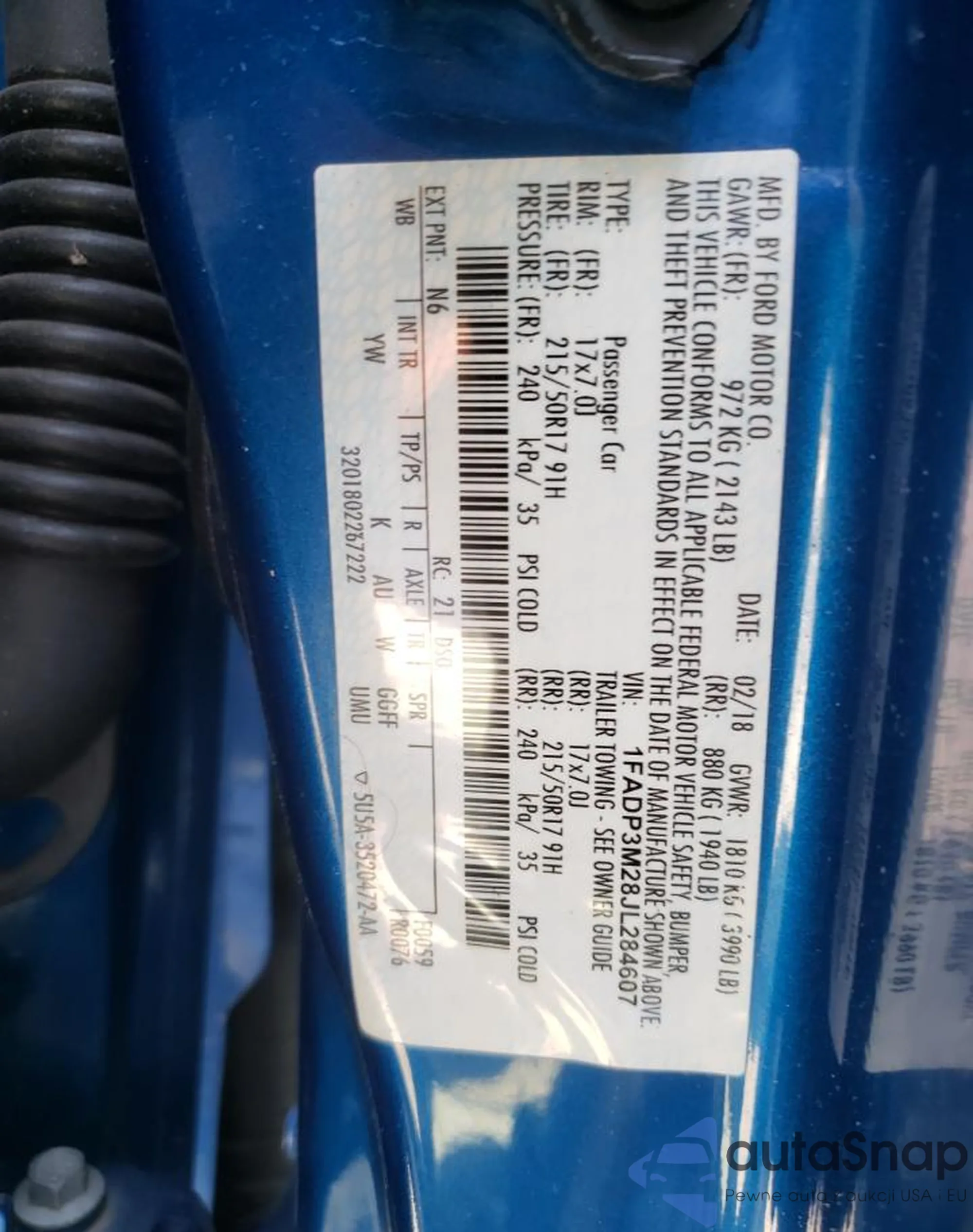 • VIN 1FADP3M28JL284607