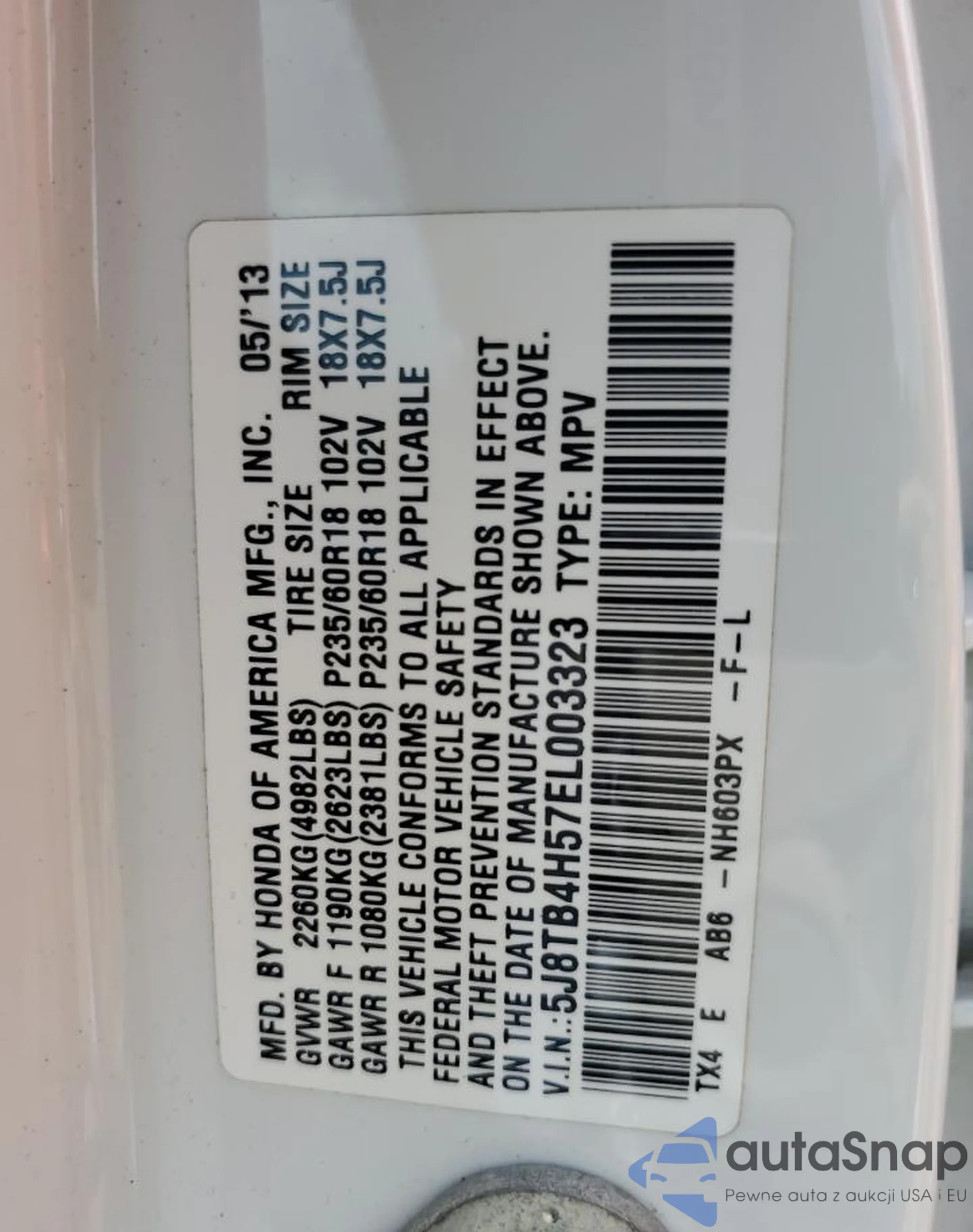 • VIN 5J8TB4H57EL003323