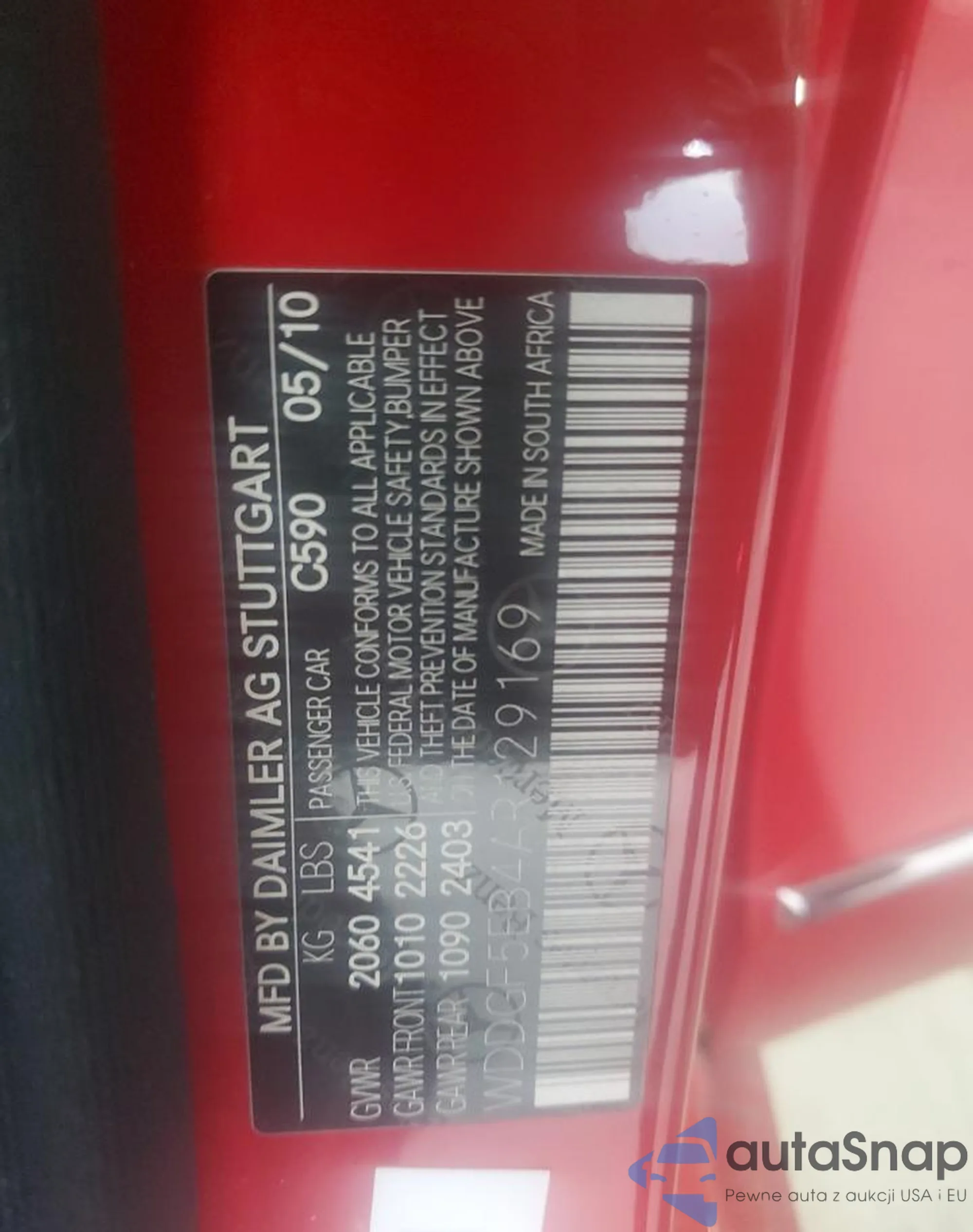 LOT: 69608635 VIN: WDDGF5EB4AR129169