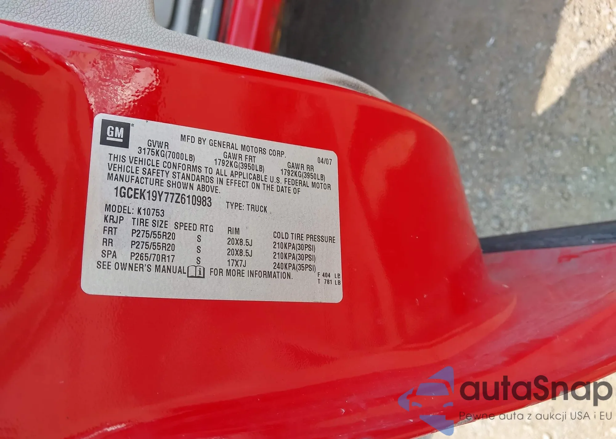 • VIN 1GCEK19Y77Z610983