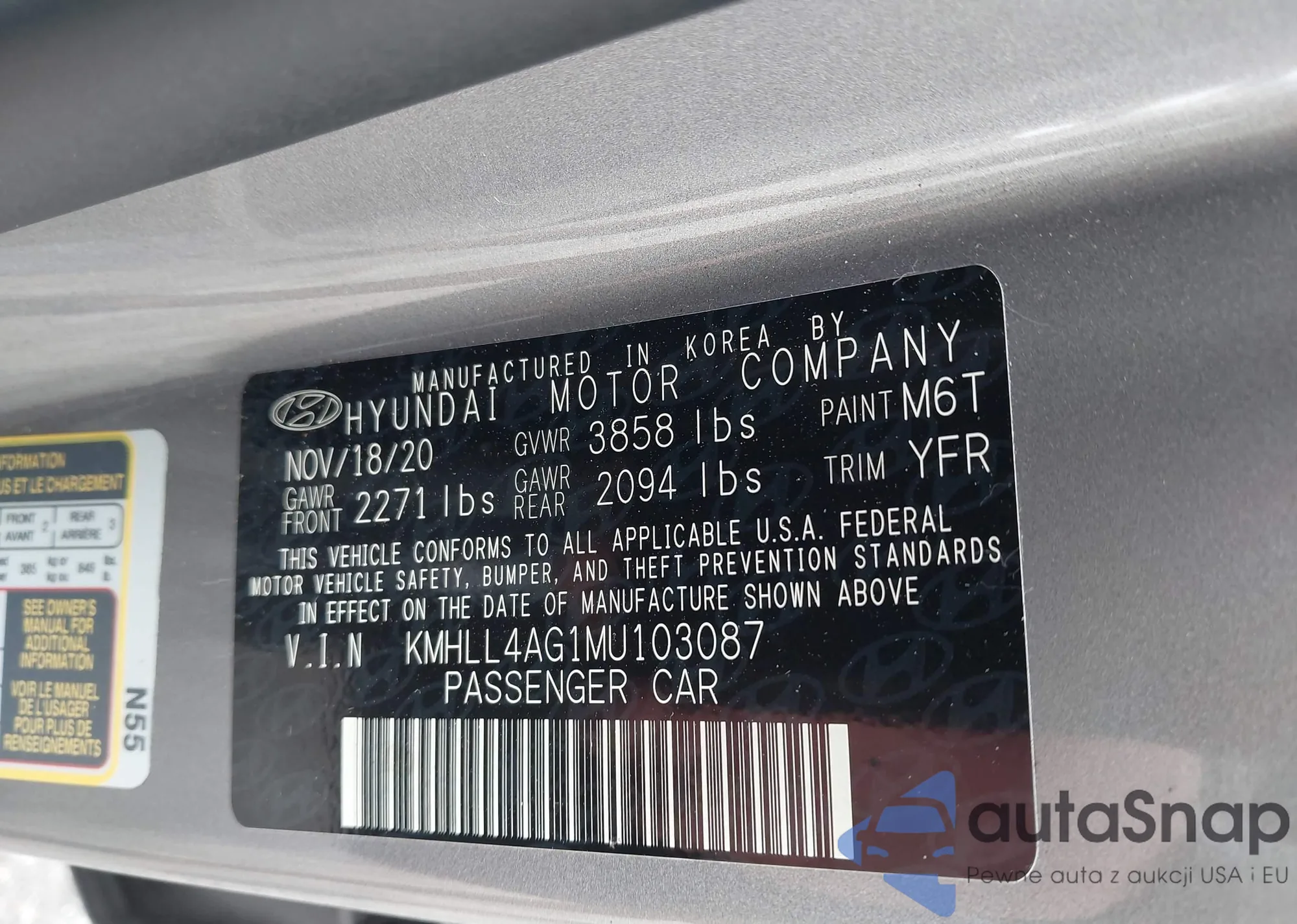 • VIN KMHLL4AG1MU103087