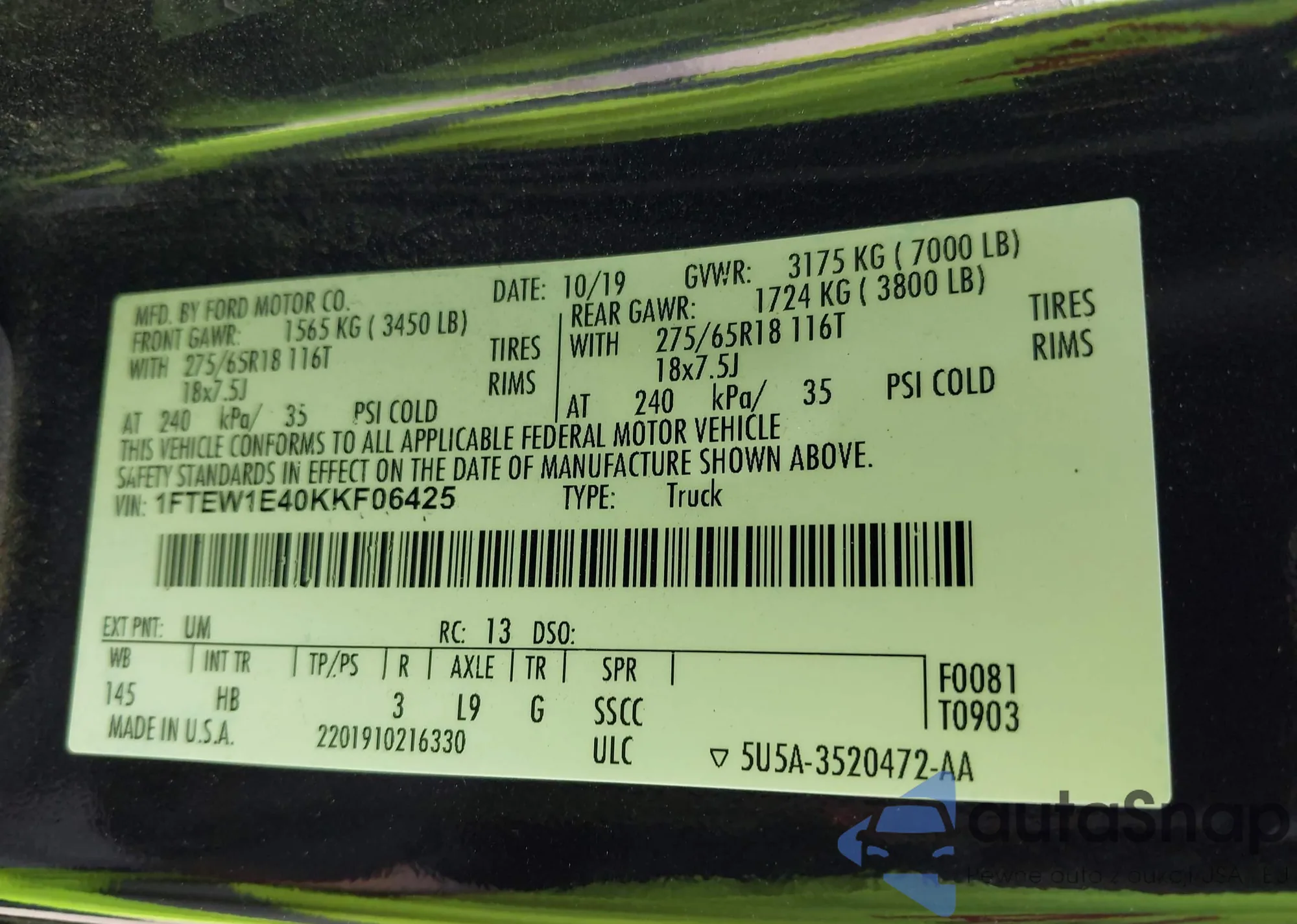 • VIN 1FTEW1E40KKF06425