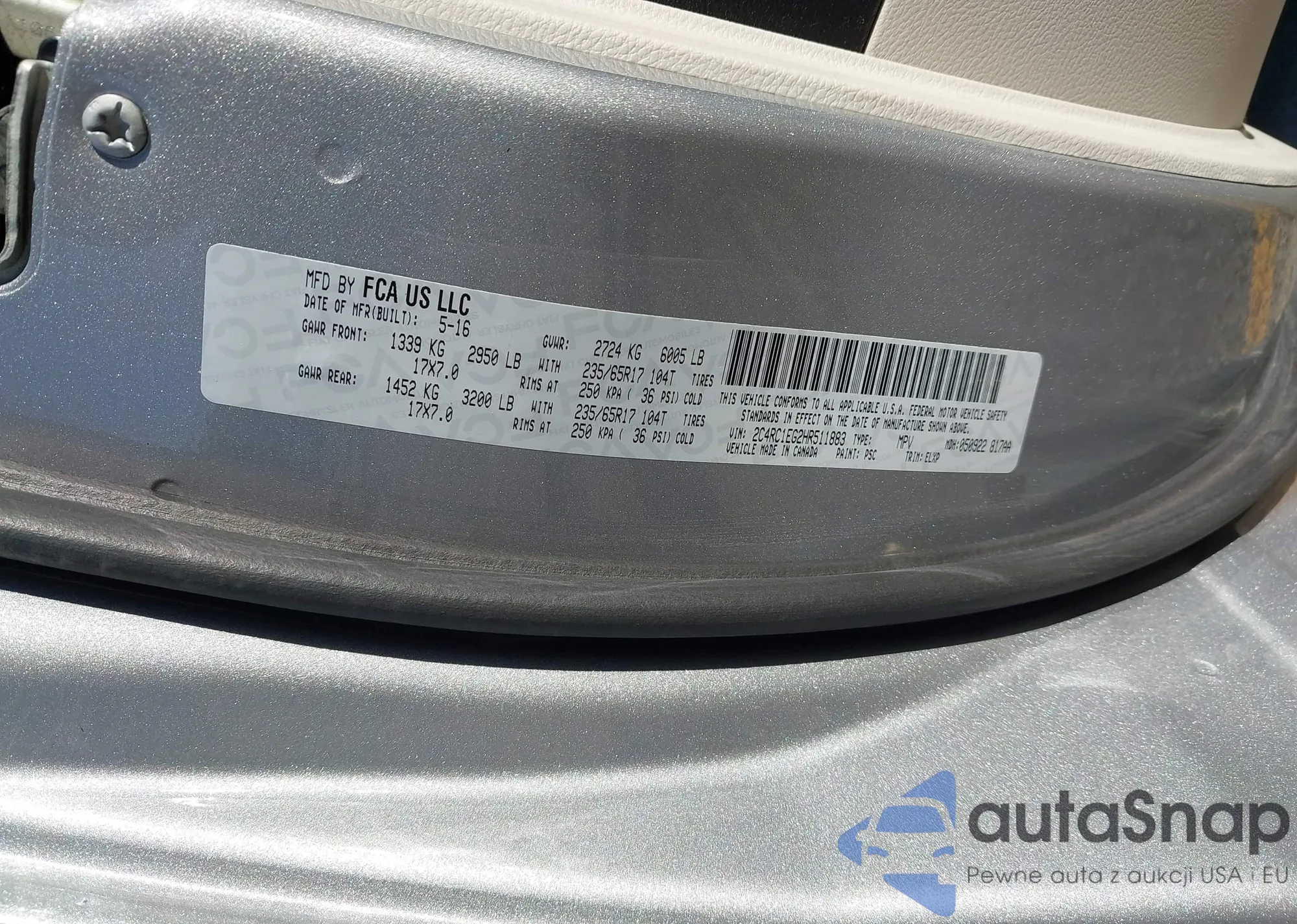 • VIN 2C4RC1EG2HR511883