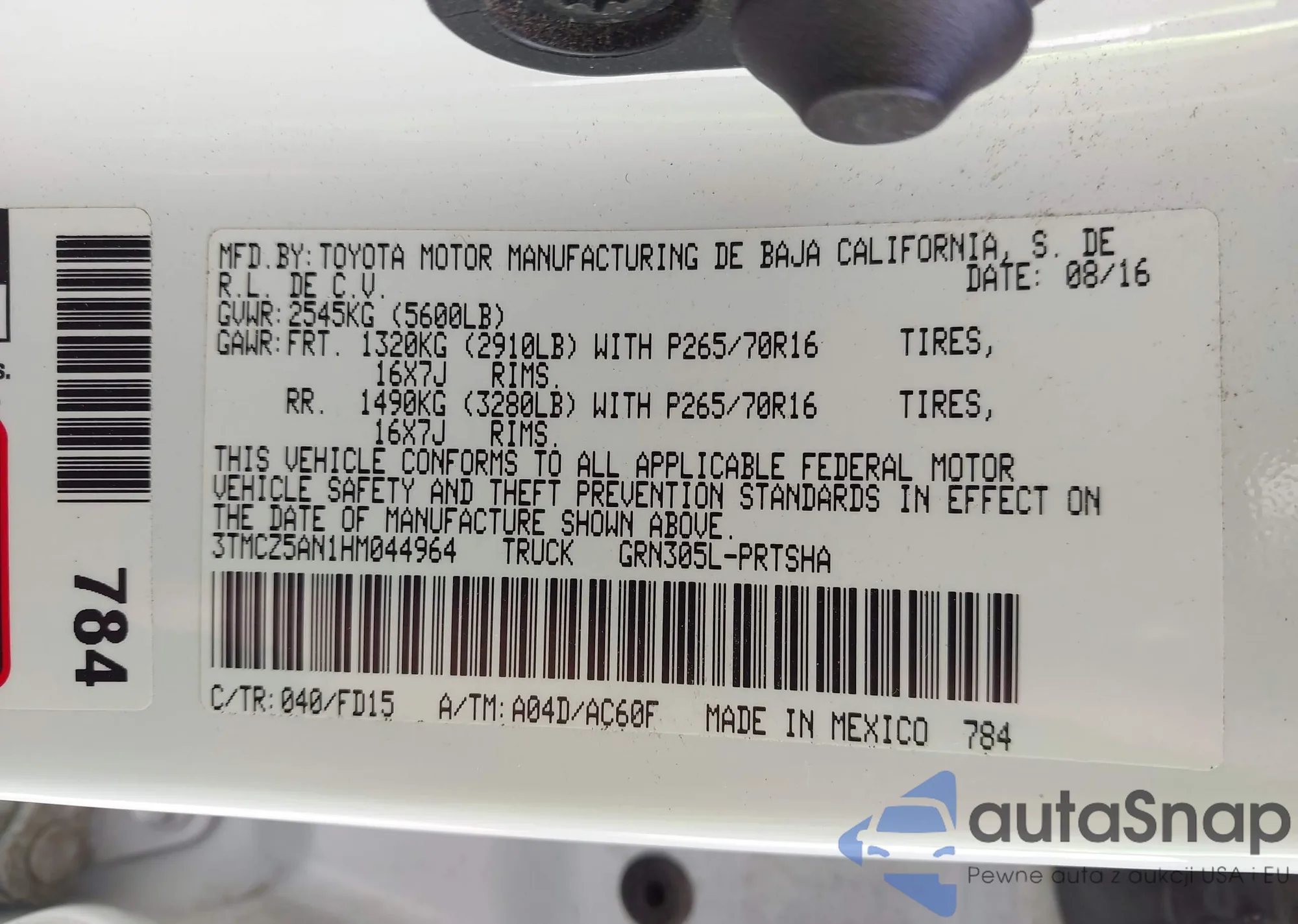 • VIN 3TMCZ5AN1HM044964