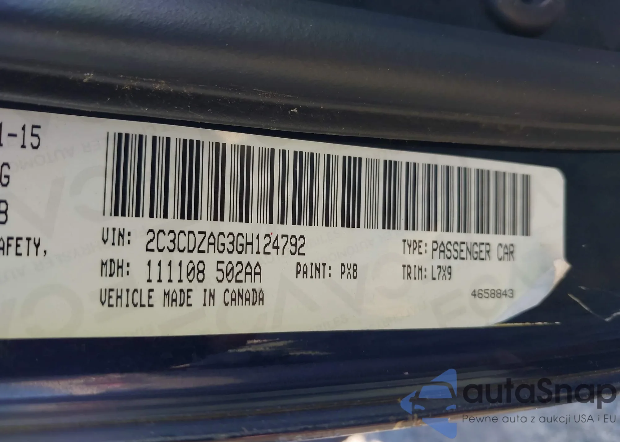 • VIN 2C3CDZAG3GH124792
