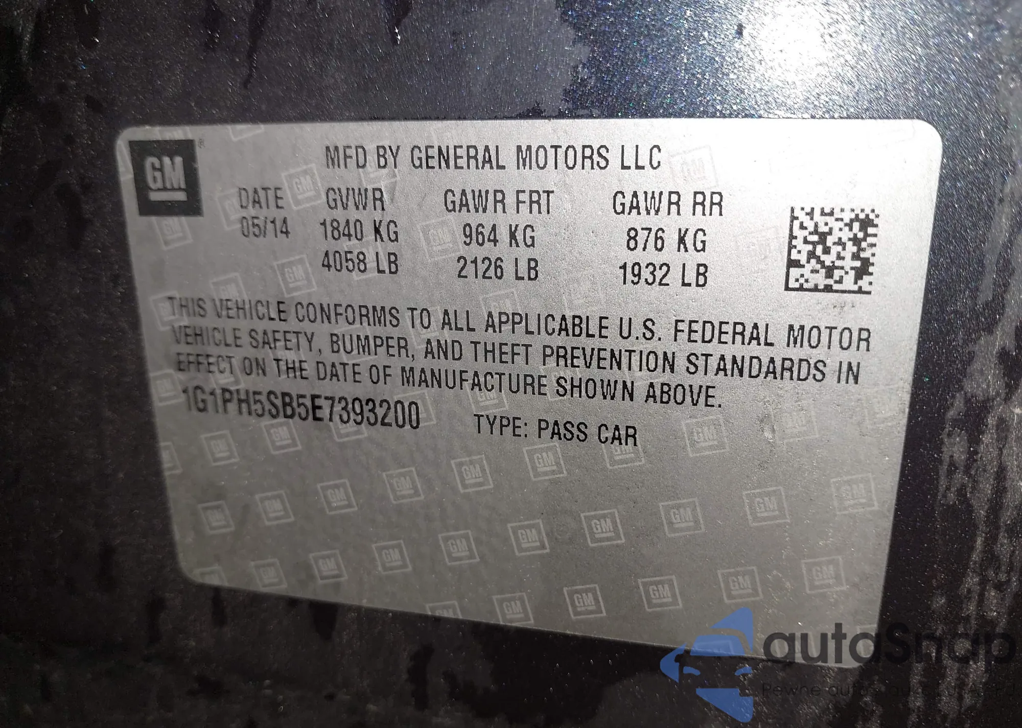 LOT: 42578302 VIN: 1G1PH5SB5E7393200
