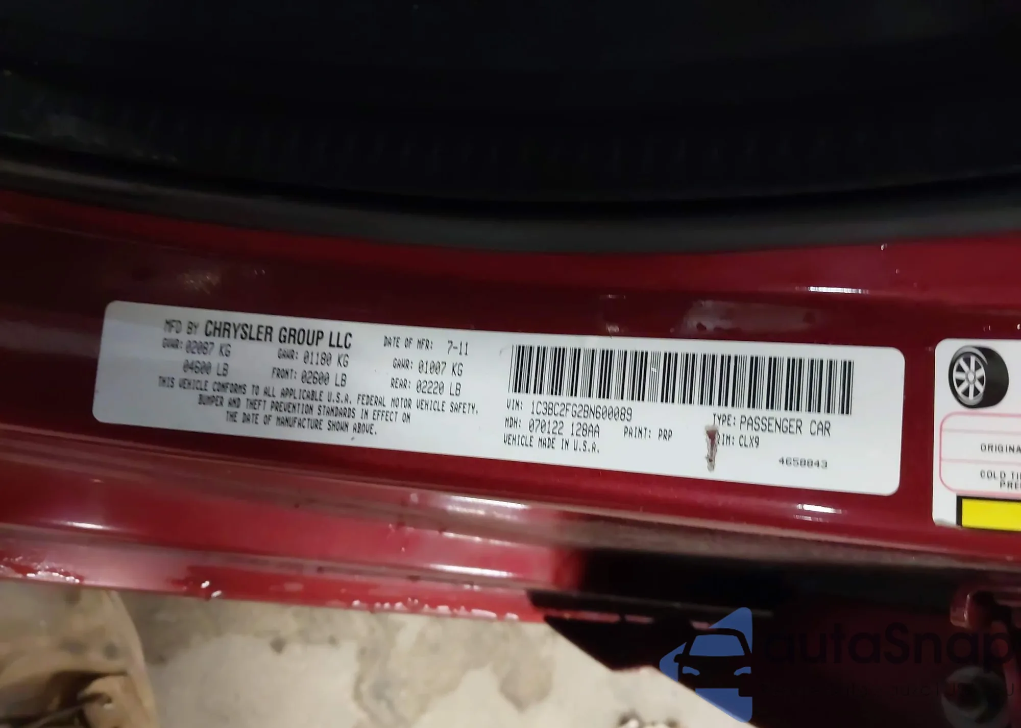 • VIN 1C3BC2FG2BN600089