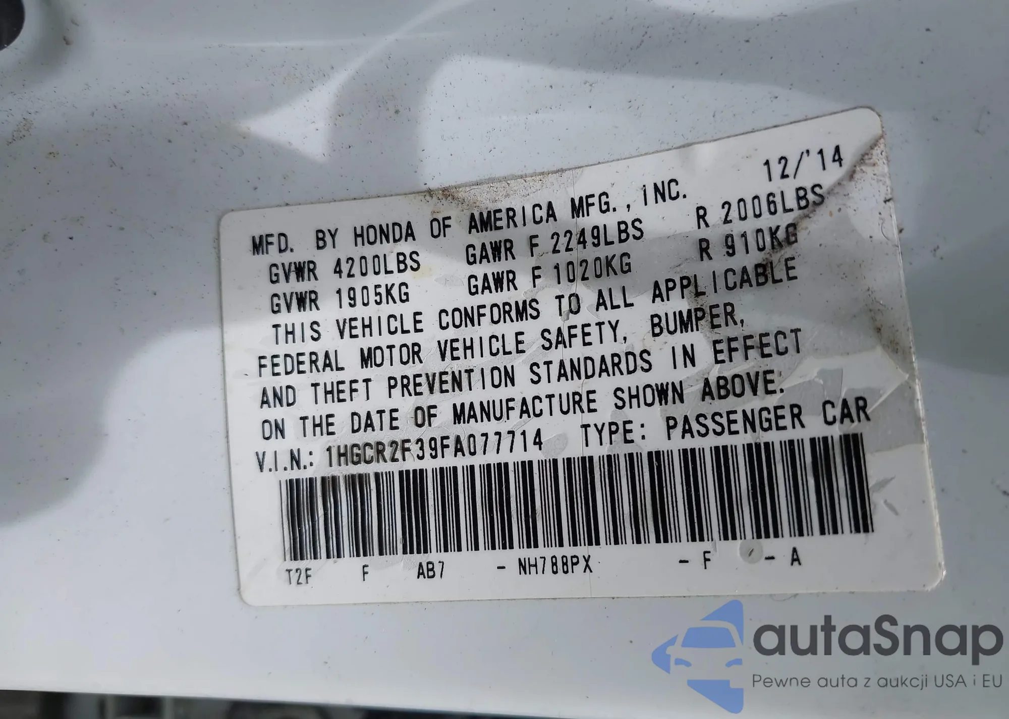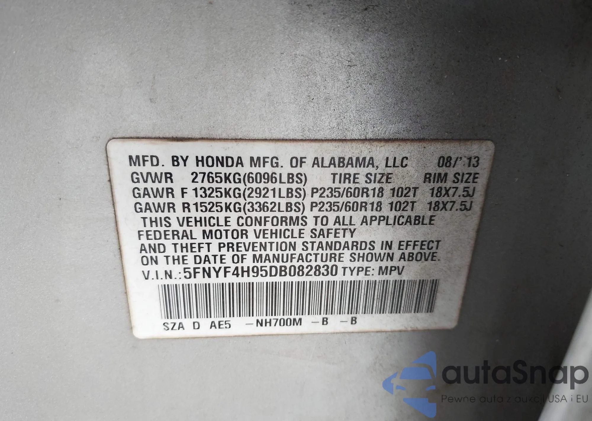 • VIN 5FNYF4H95DB082830