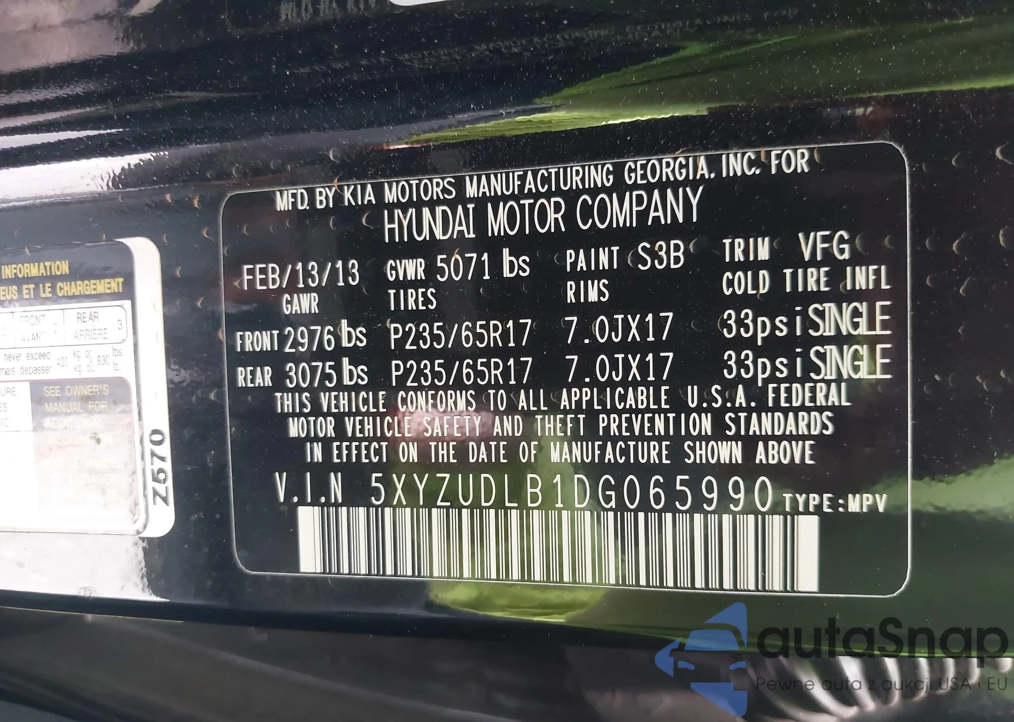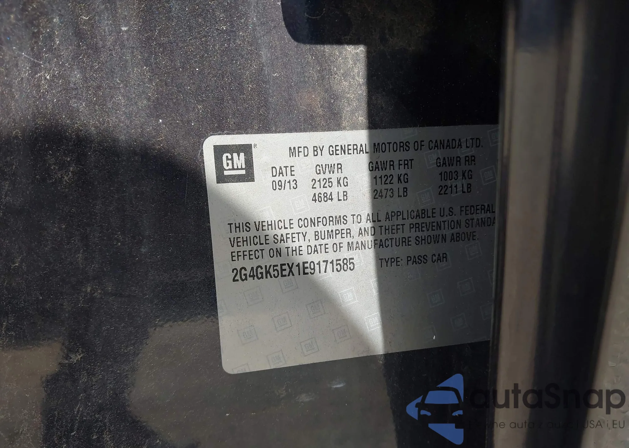 • VIN WAUBGAFL4DA130940