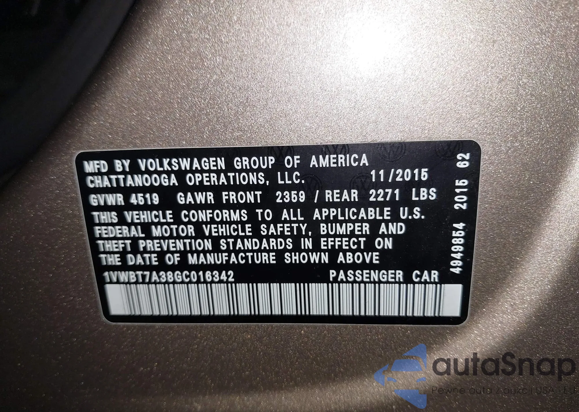 • VIN 1VWBT7A38GC016342
