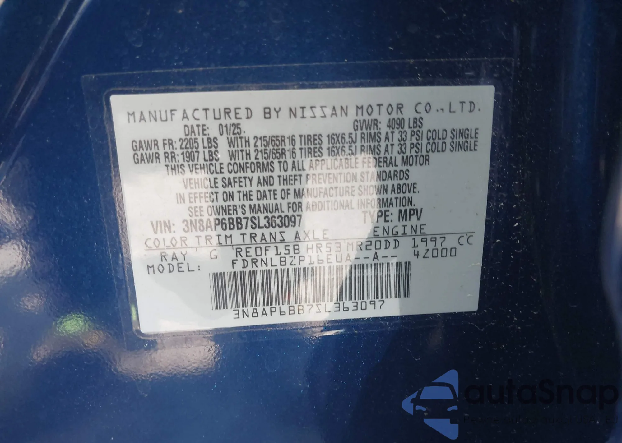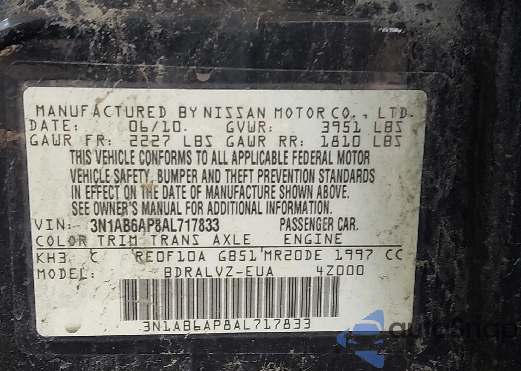 LOT: 42766237 VIN: 3N1AB6AP8AL717833