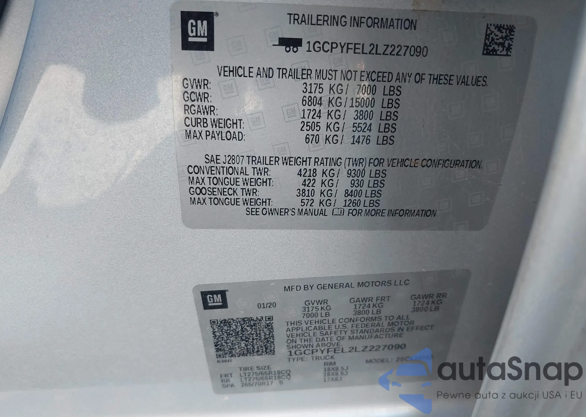 • VIN 1GCPYFEL2LZ227090