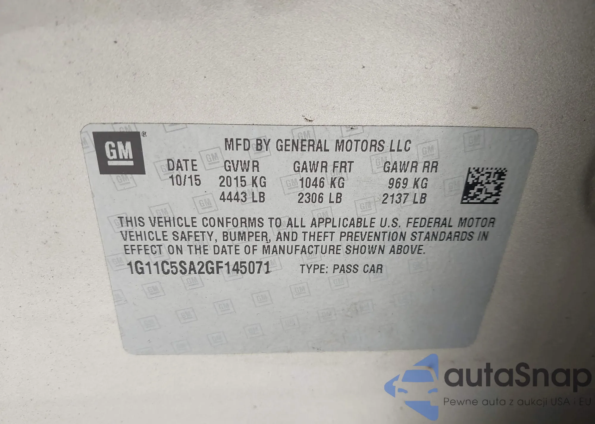 • VIN 1G11C5SA2GF145071