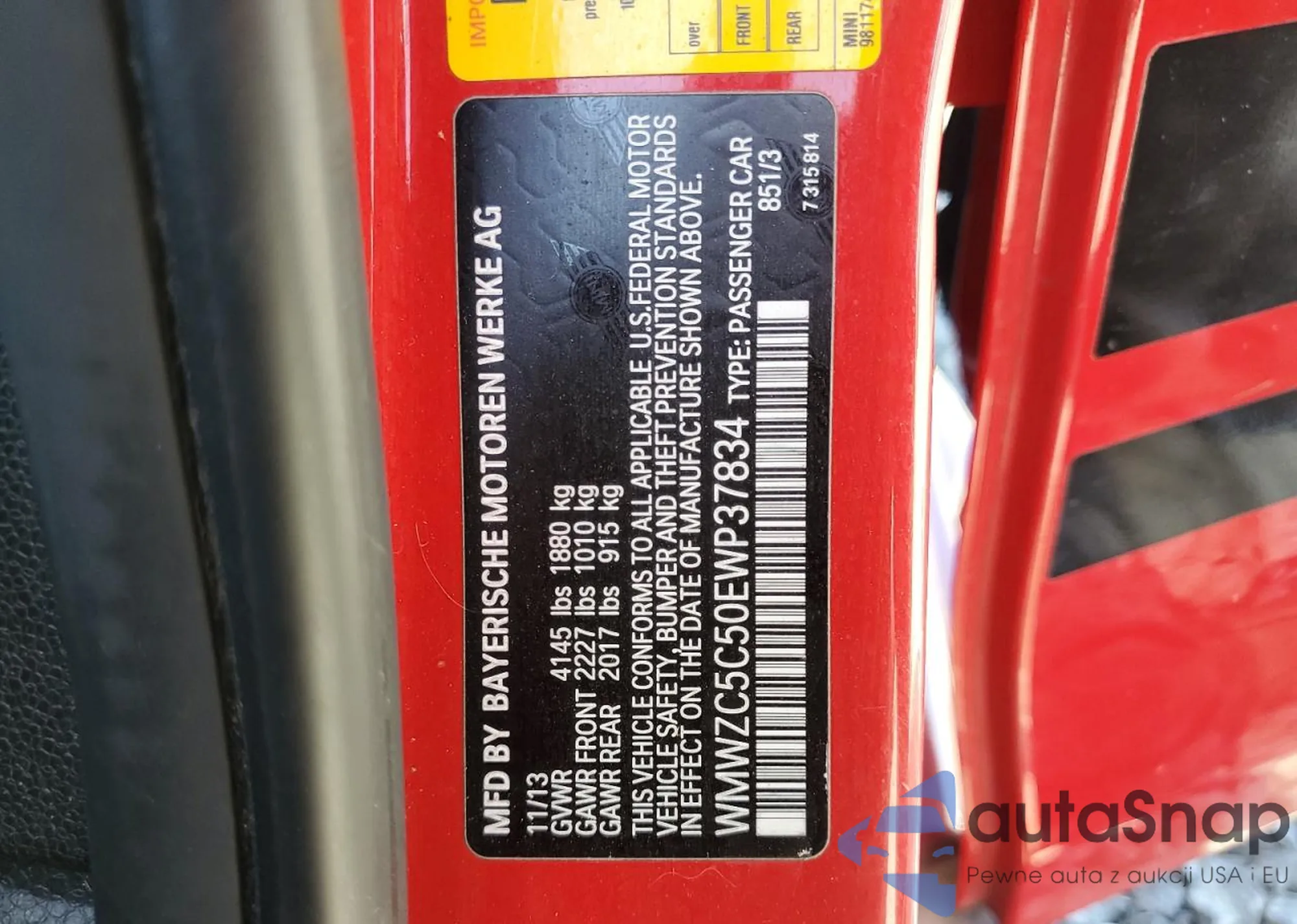 • VIN WMWZC5C50EWP37834