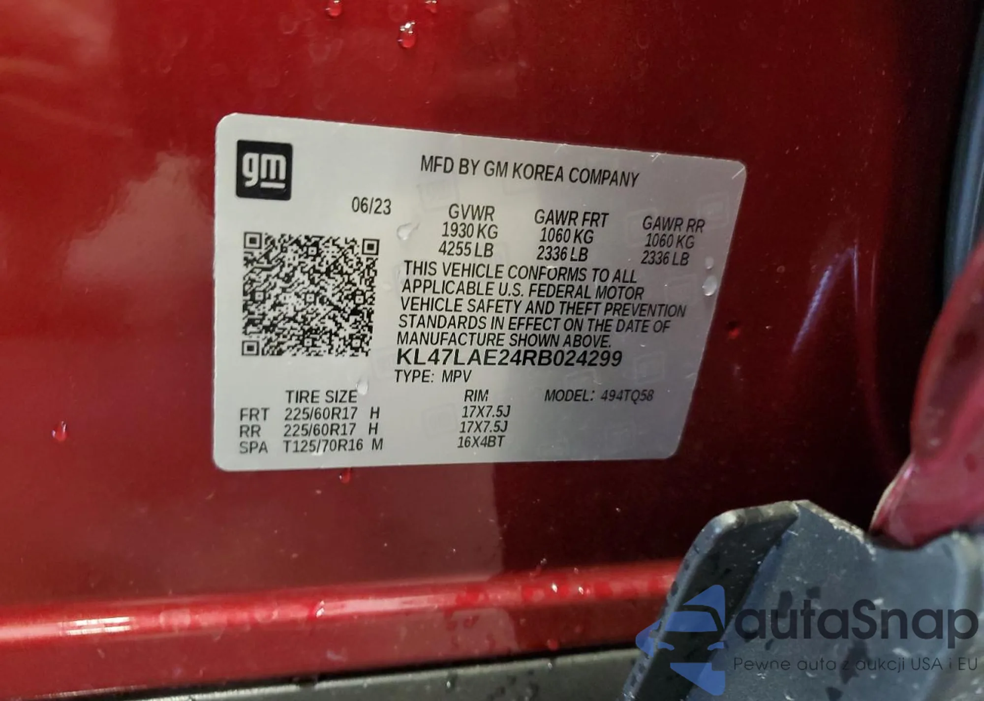 LOT: 68002525 VIN: KL47LAE24RB024299