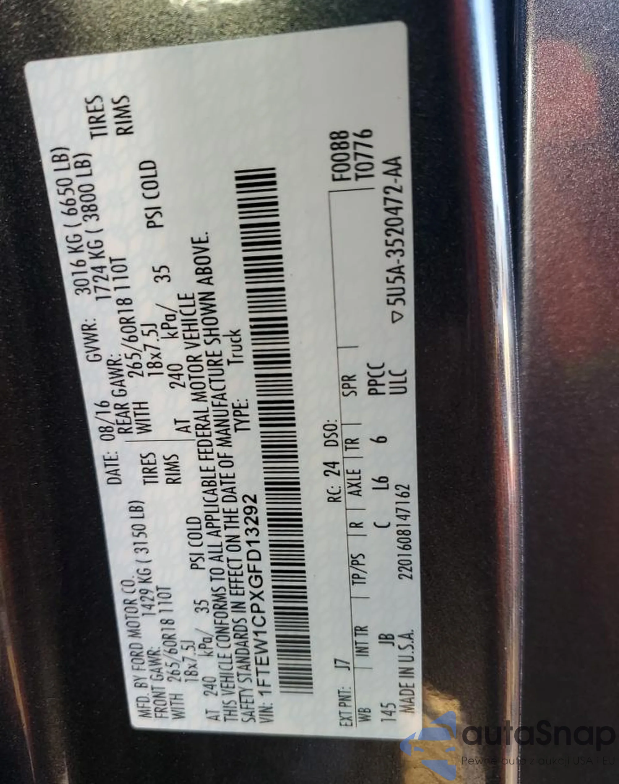 • VIN 1FTEW1CPXGFD13292