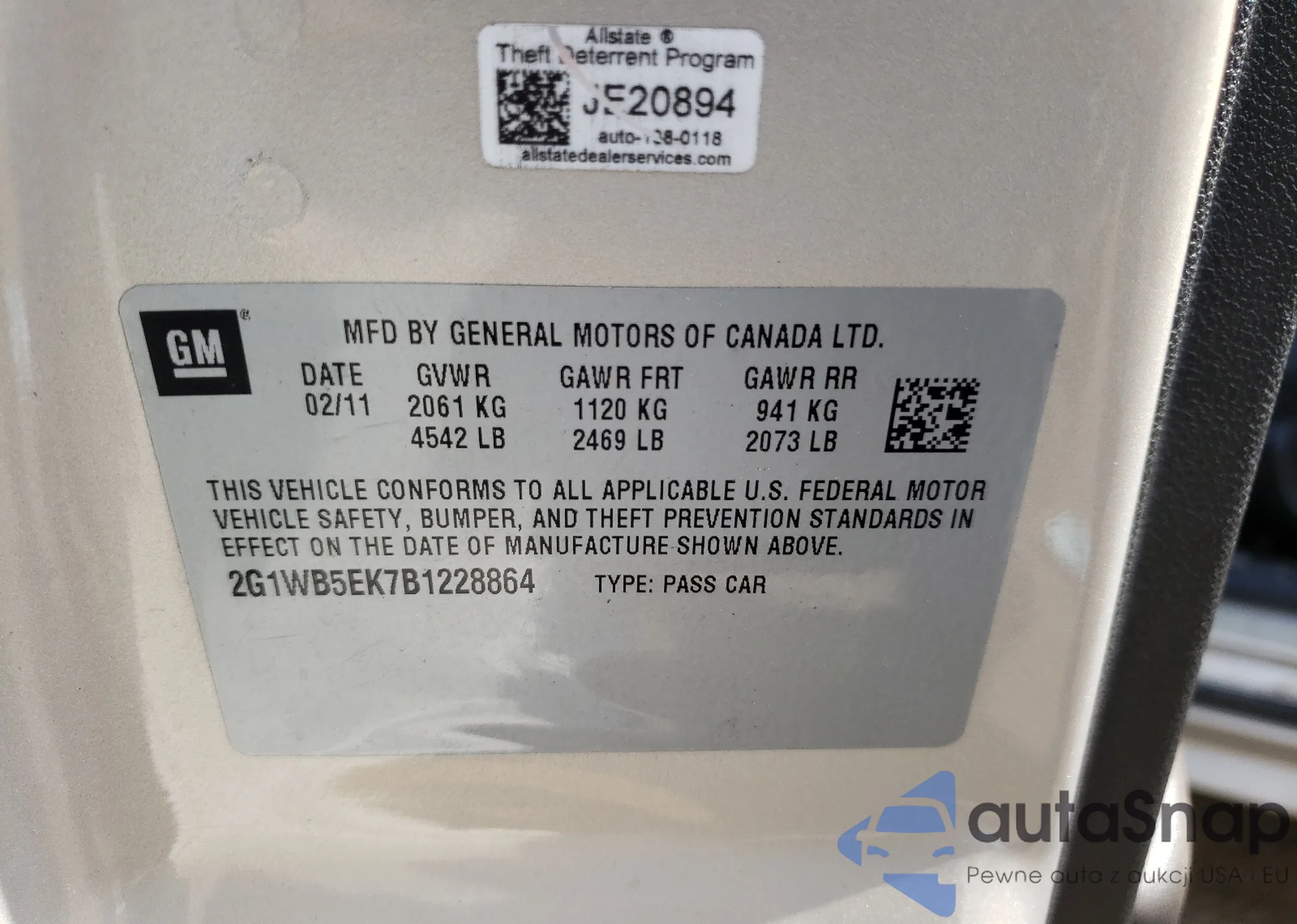 2011 Chevrolet Impala Lt z USA, uszkodzony, nr VIN 2G1WB5EK7B1228864