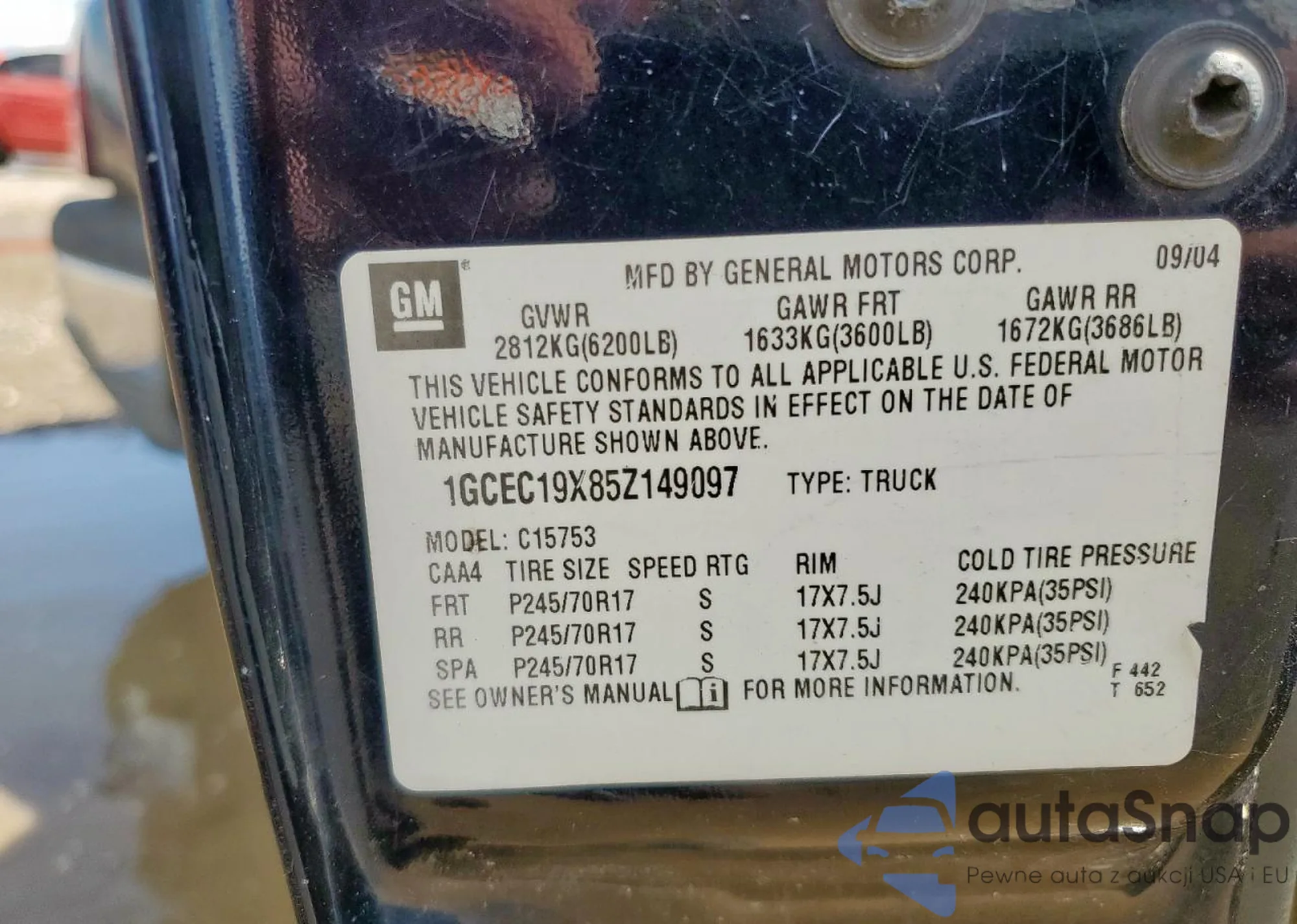 • VIN 1GCEC19X85Z149097