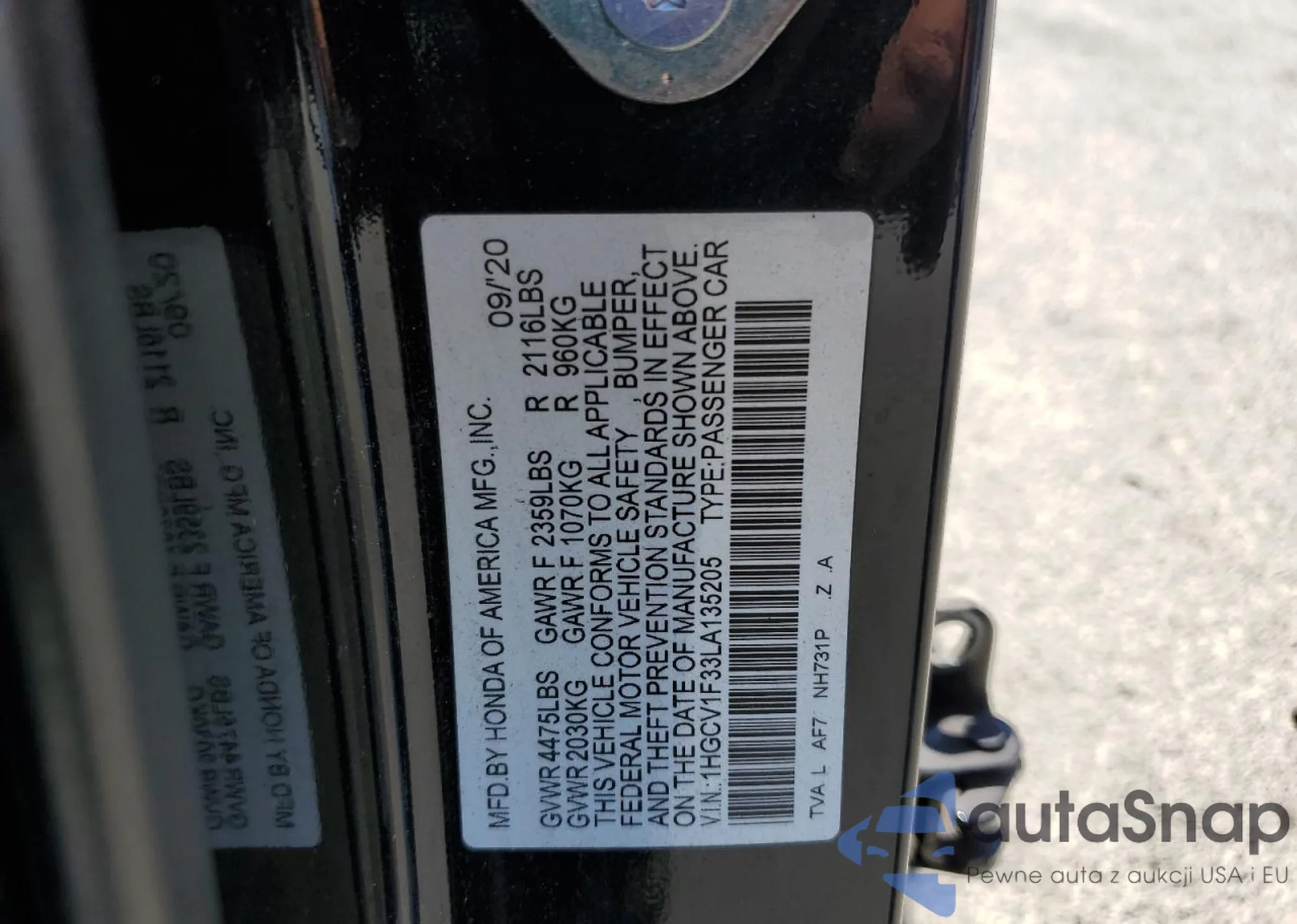 • VIN 1HGCV1F33LA135205