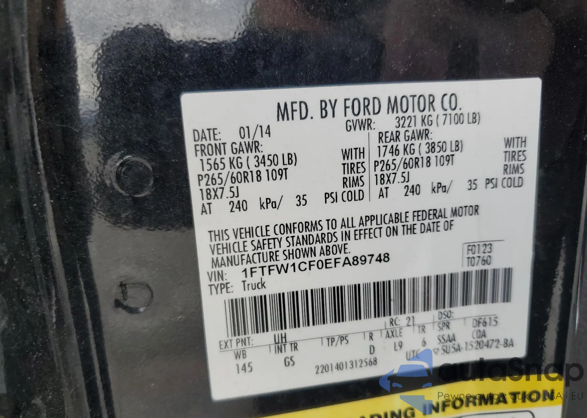 • VIN 1FTFW1CF0EFA89748