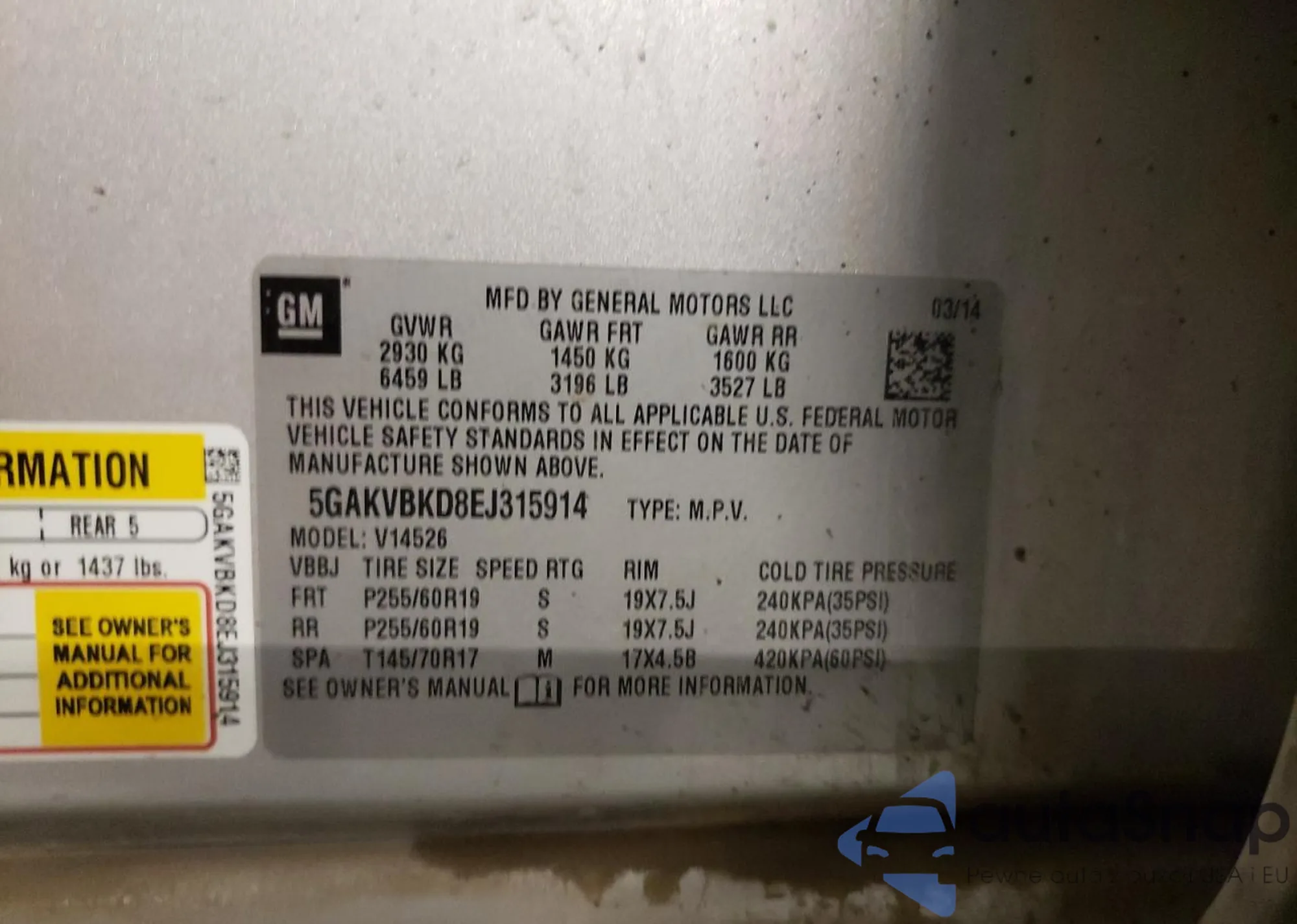 • VIN 5GAKVBKD8EJ315914