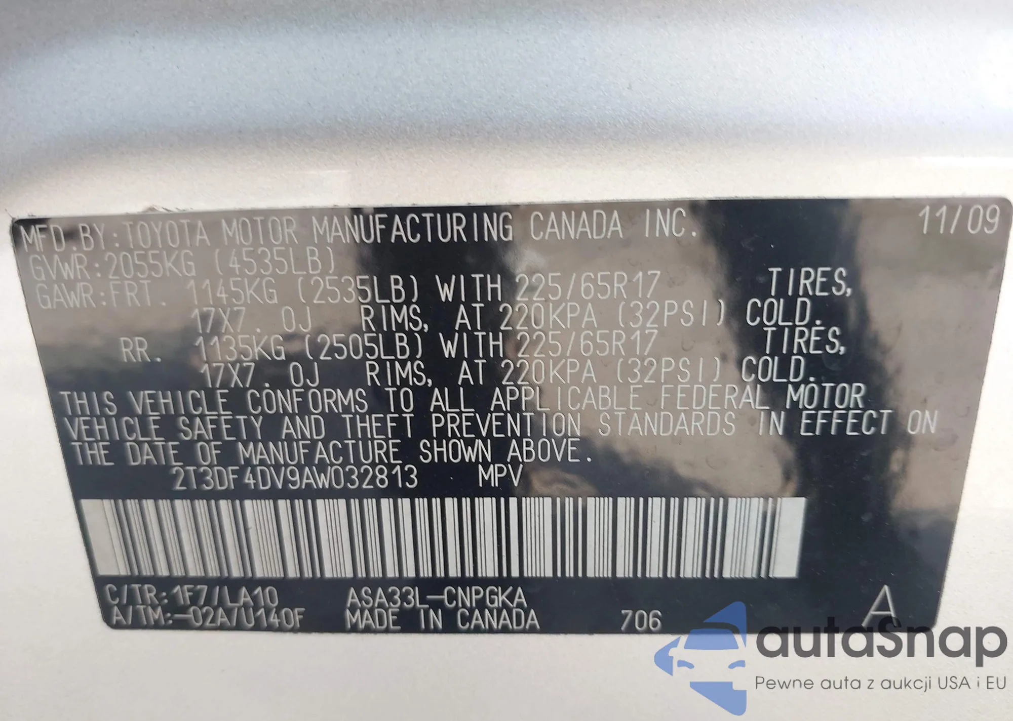 • VIN 2T3DF4DV9AW032813
