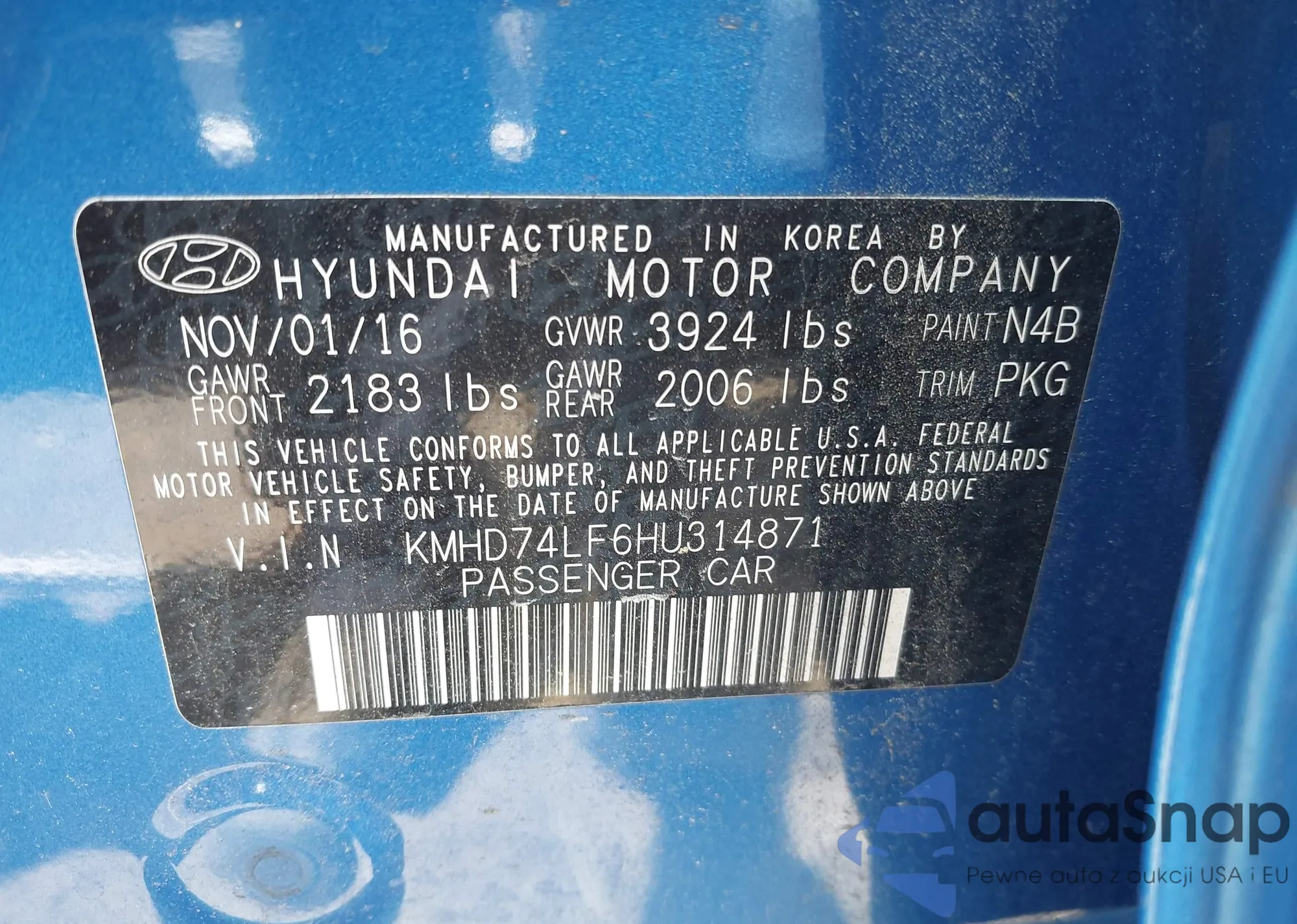 • VIN KMHD74LF6HU314871