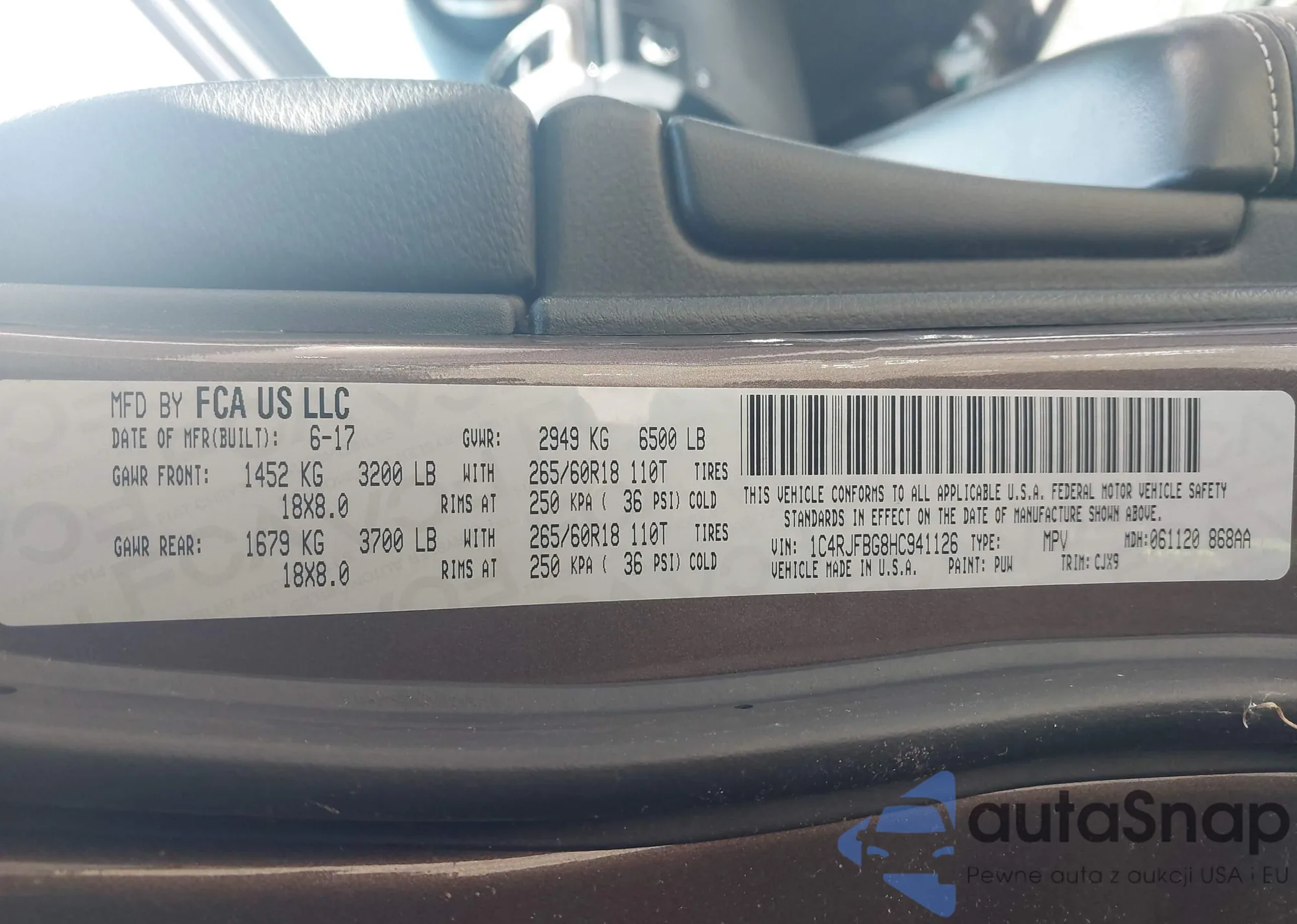• VIN 1C4RJFBG8HC941126