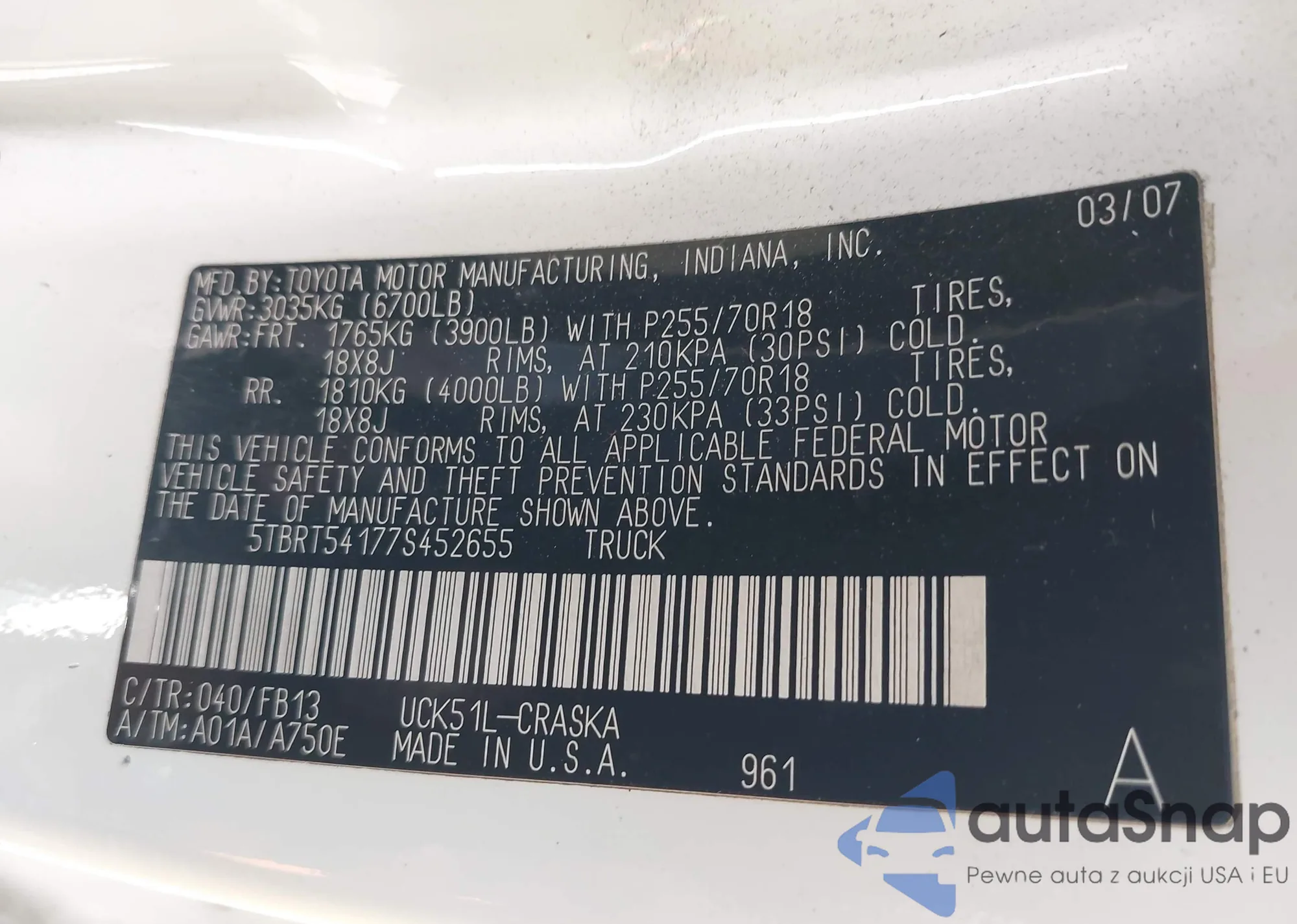• VIN 5TBRT54177S452655
