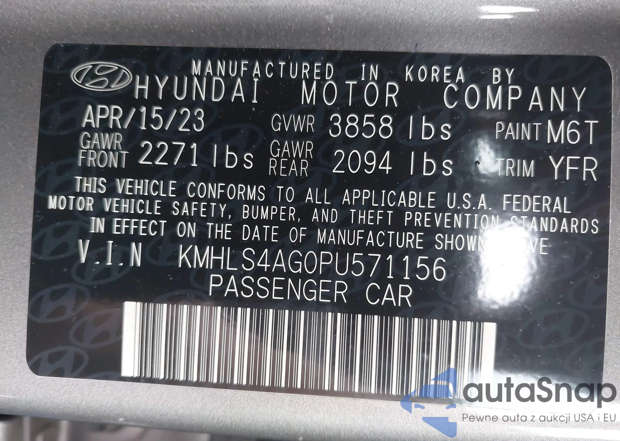 • VIN KMHLS4AG0PU571156