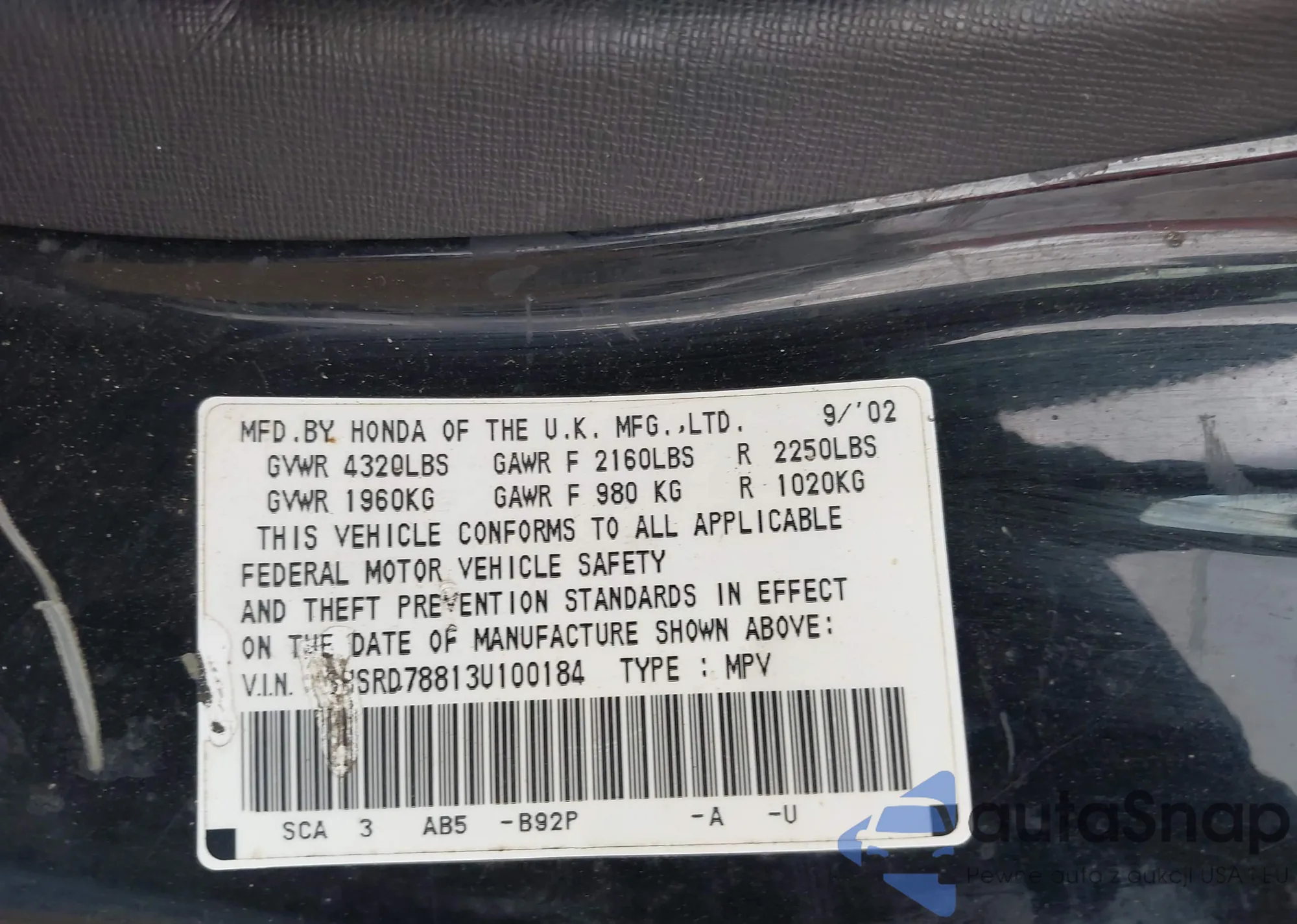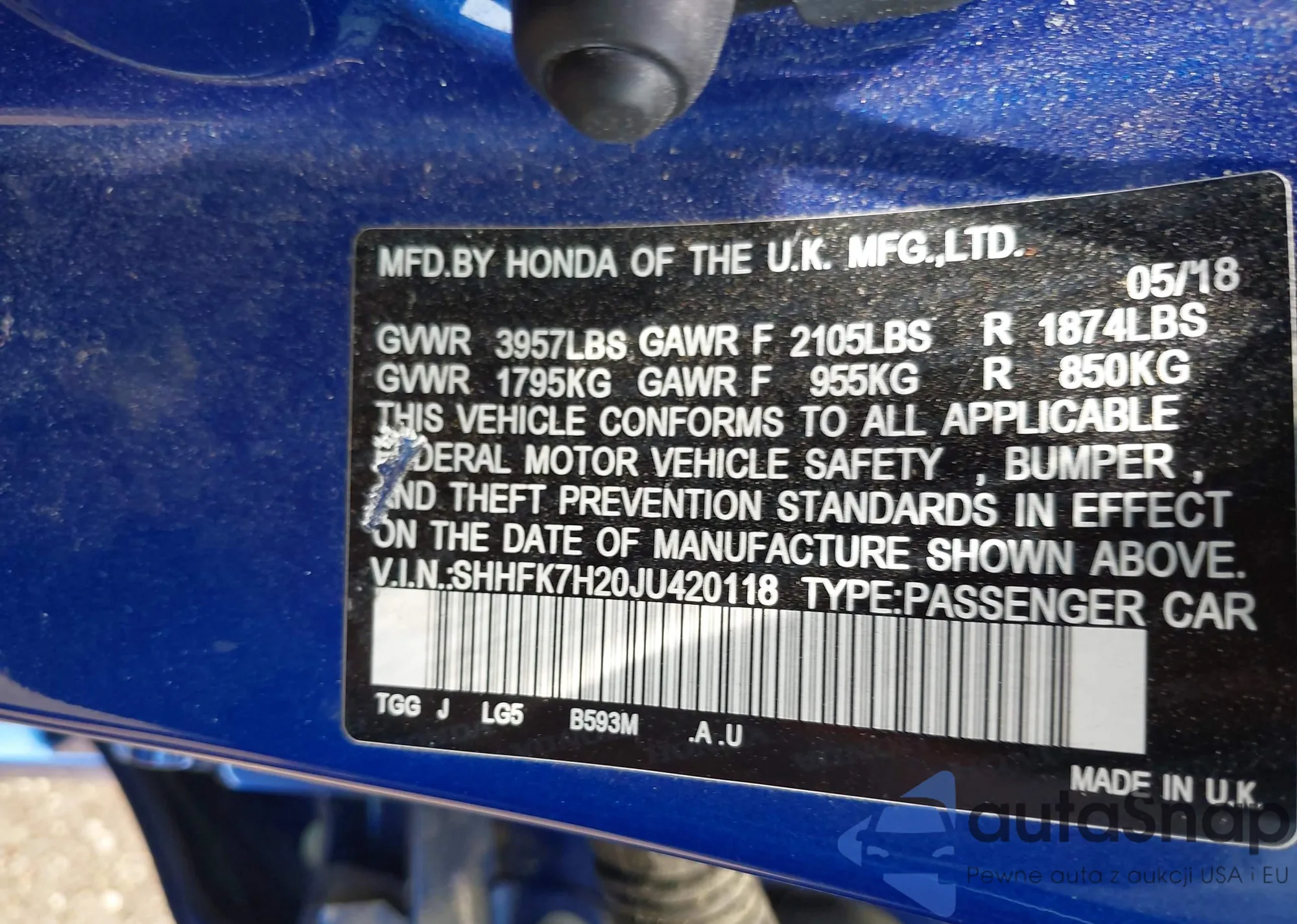 • VIN SHHFK7H20JU420118