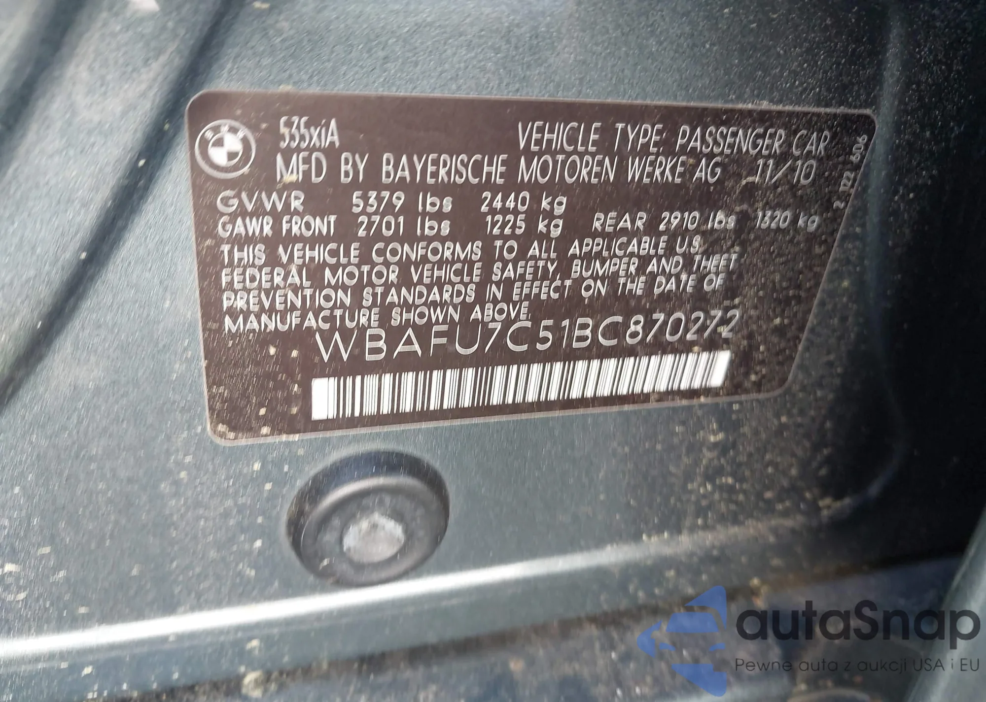 • VIN WBAFU7C51BC870272