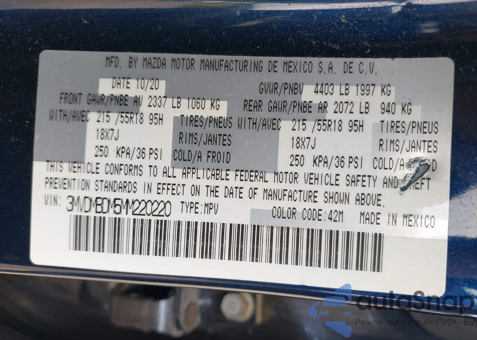 LOT: 43053734 VIN: 3MVDMBDM5MM220220