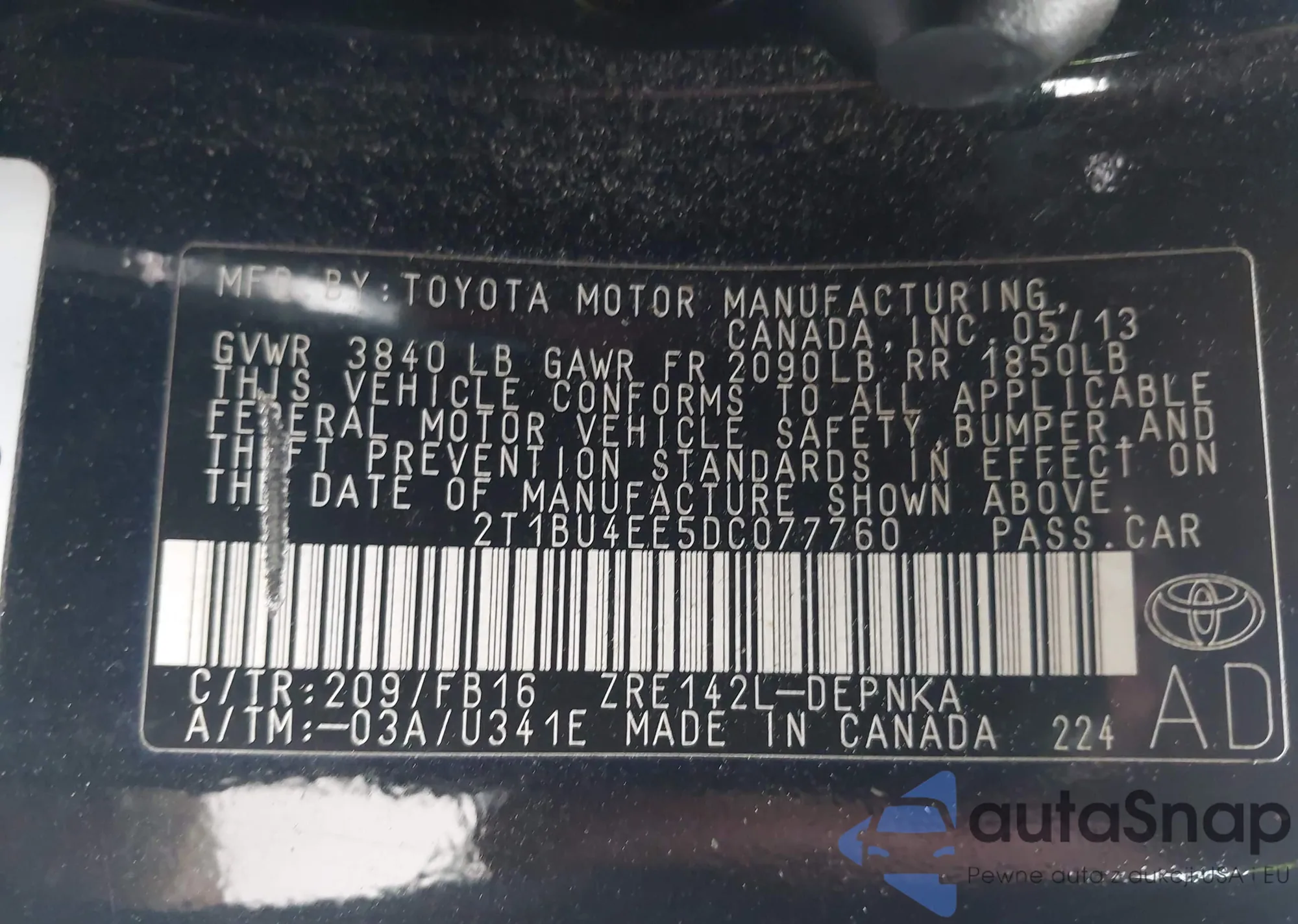 • VIN 2T1BU4EE5DC077760