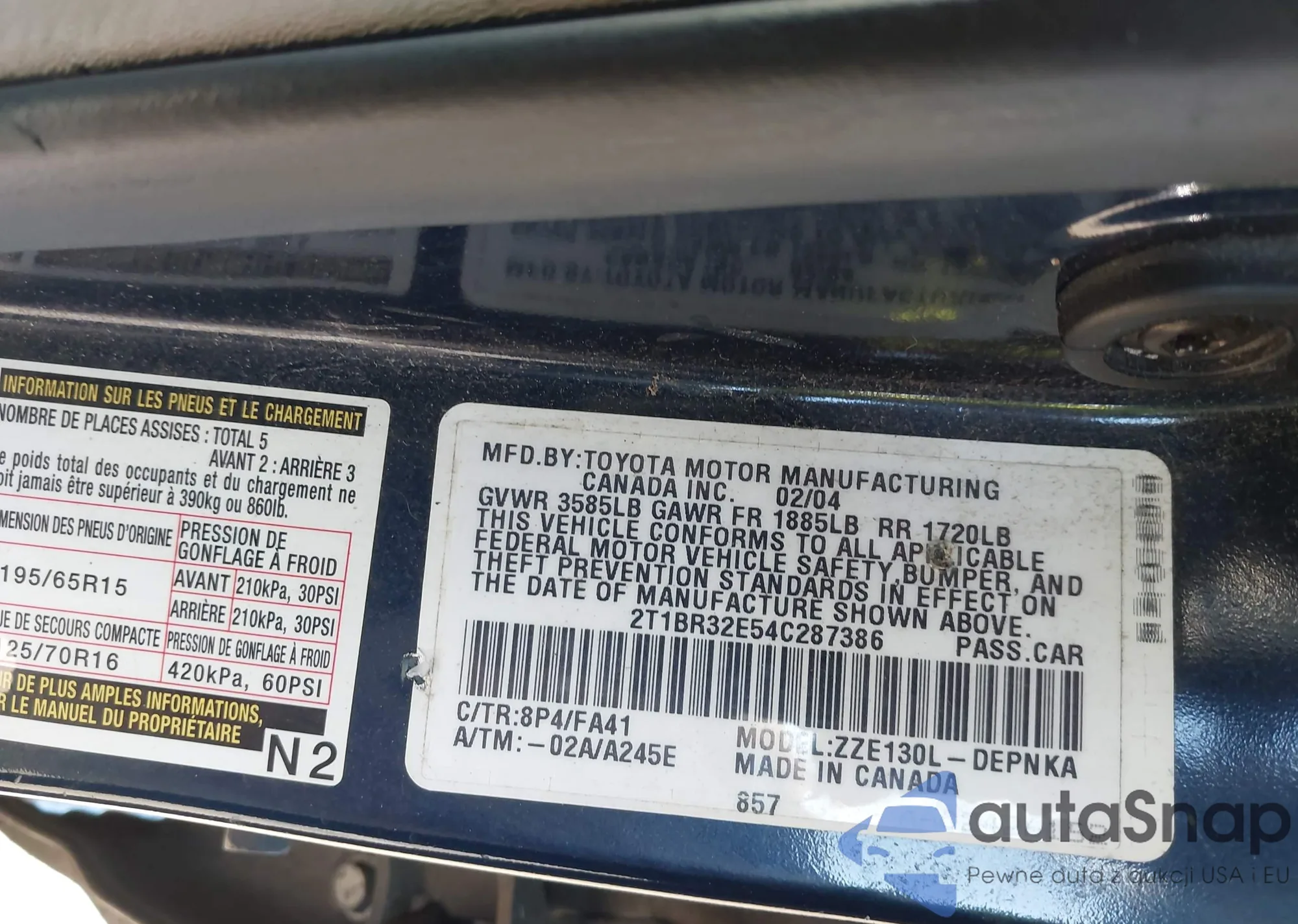 • VIN 2T1BR32E85C397074