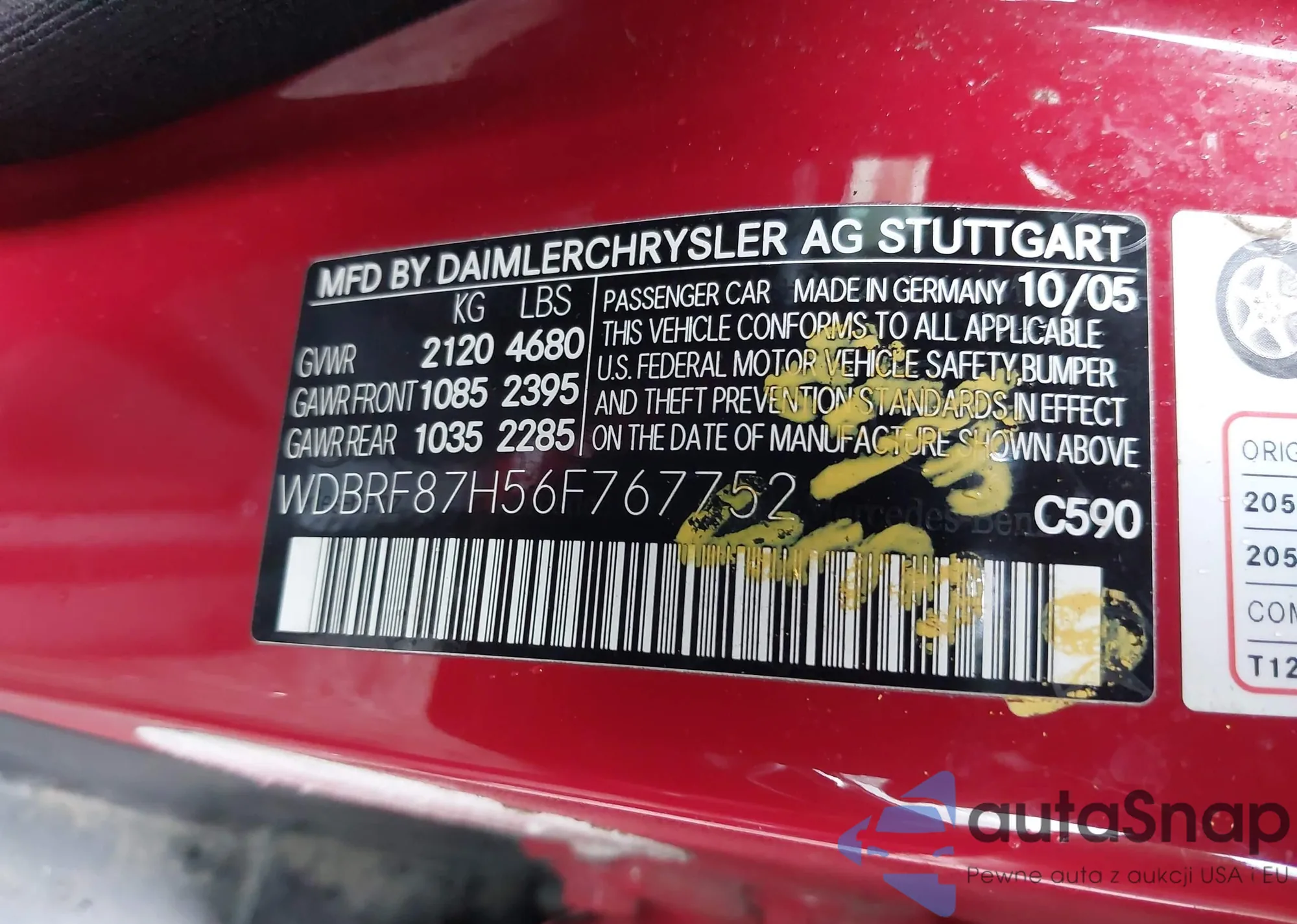 LOT: 43017104 VIN: WDBRF87H56F767752