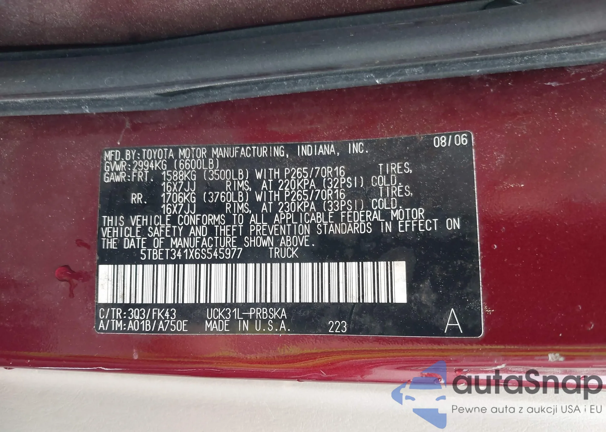 • VIN 5TBET341X6S545977