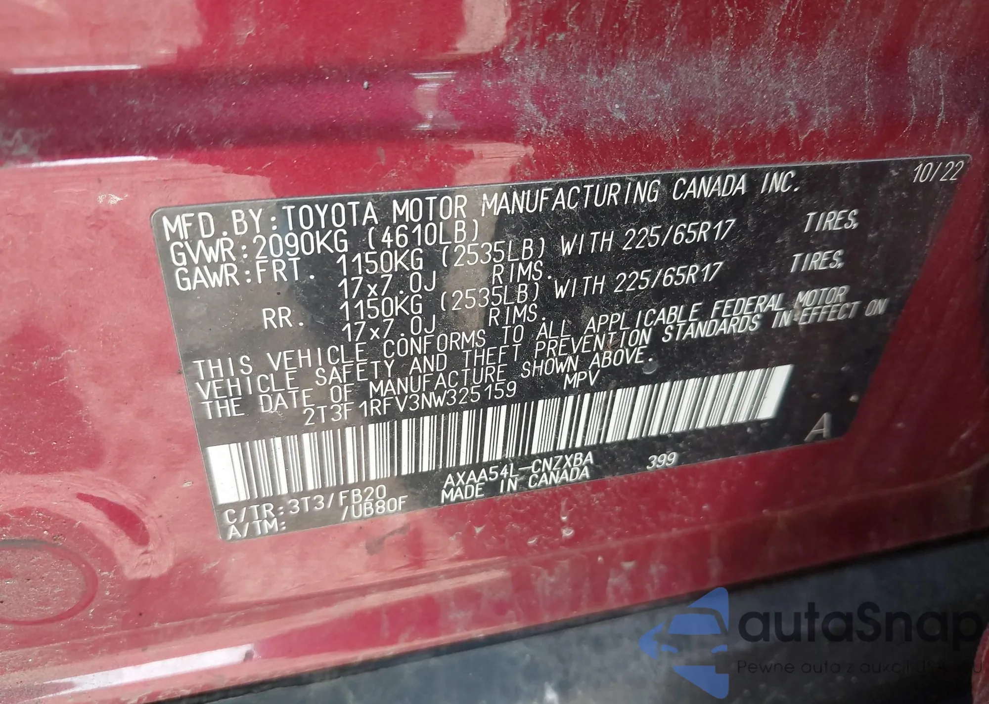 • VIN 2T3F1RFV3NW325159