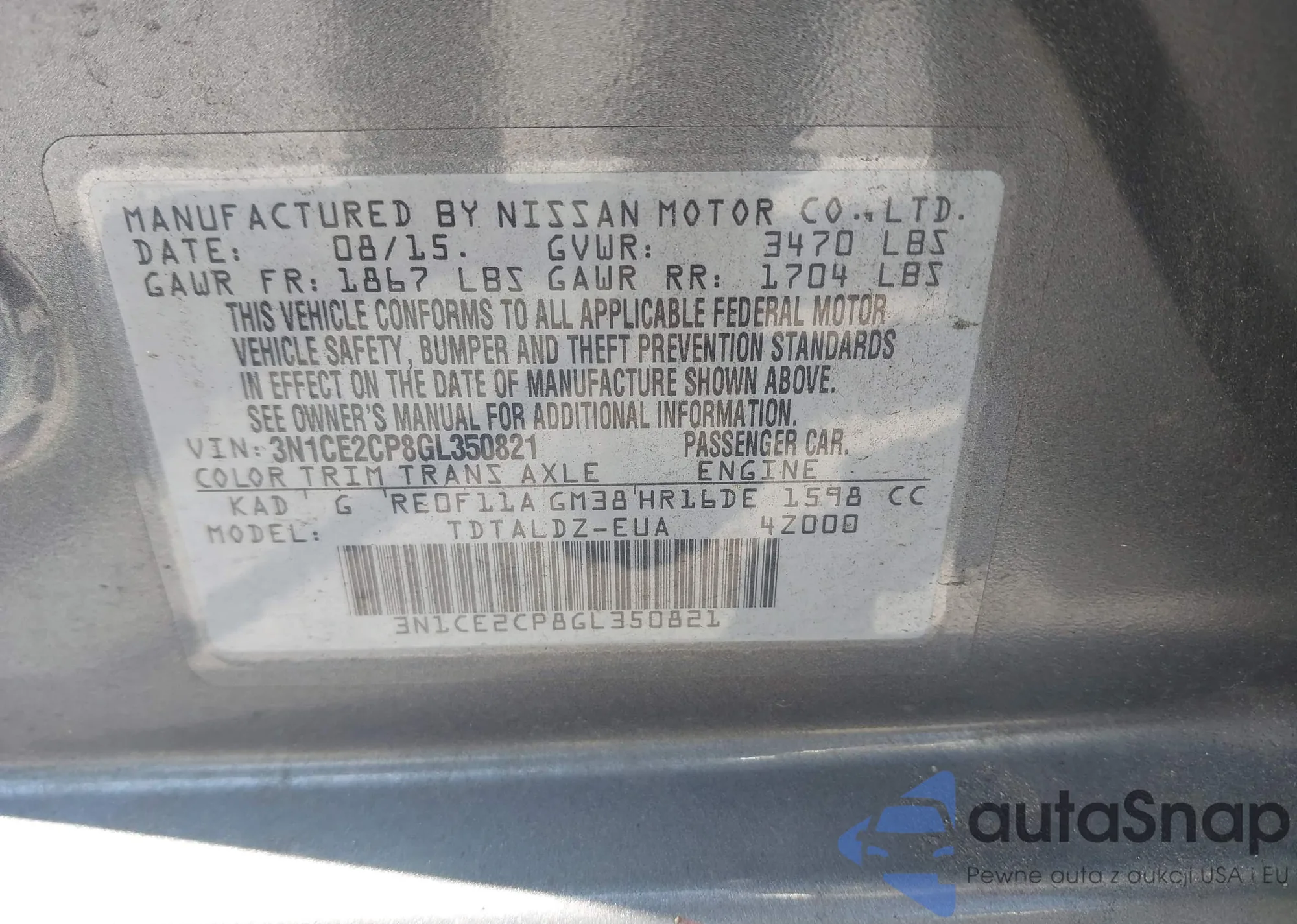 • VIN 3N1CE2CP8GL350821