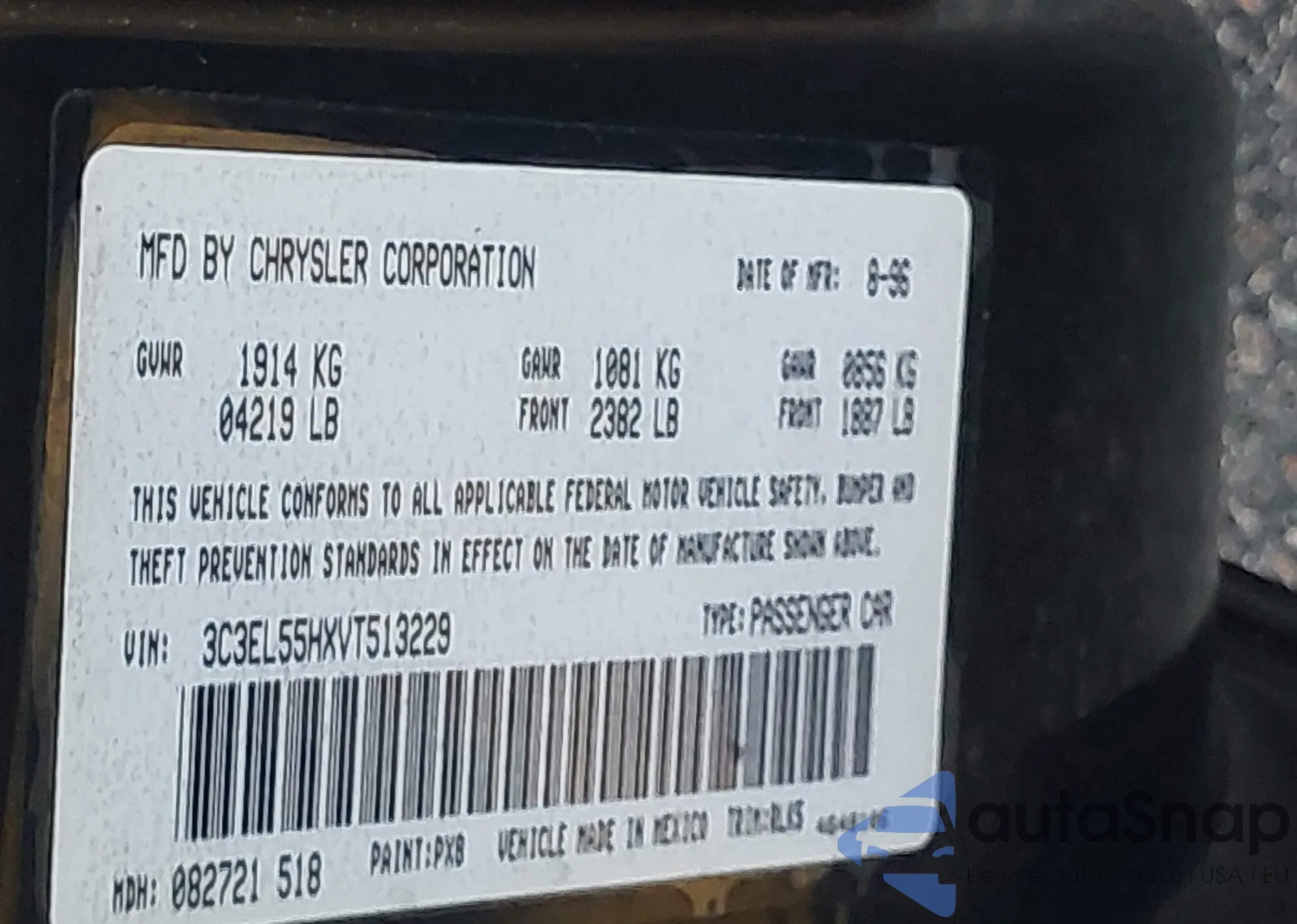 • VIN 3C3EL55HXVT513229