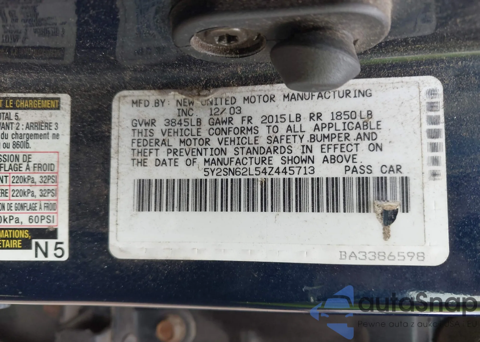 • VIN 5Y2SN62L54Z445713
