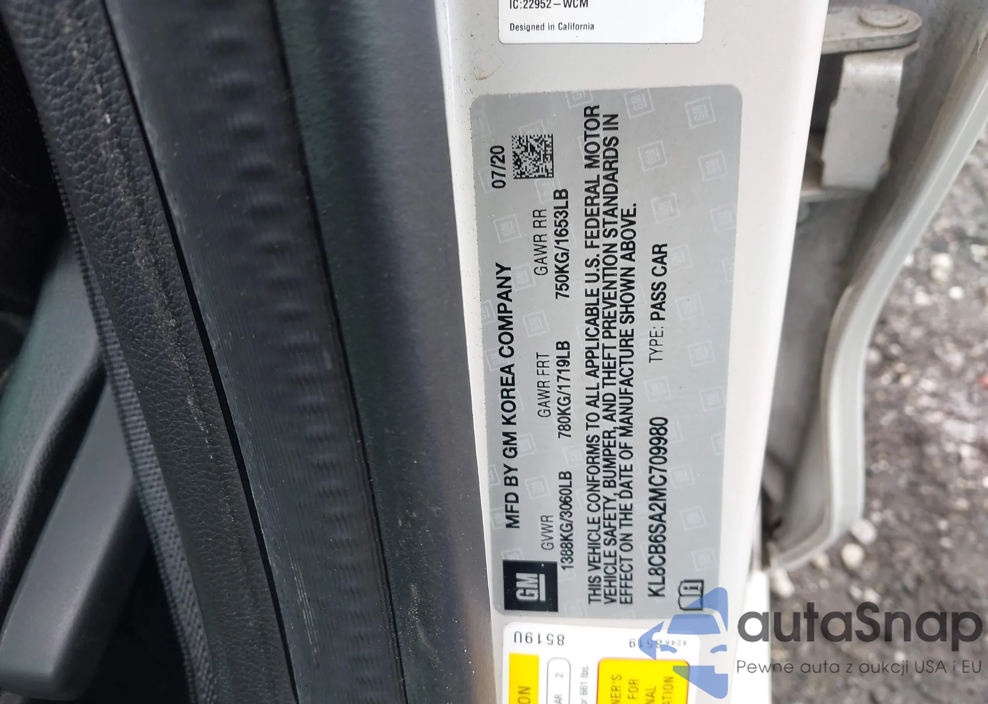 • VIN KL8CB6SA2MC709980