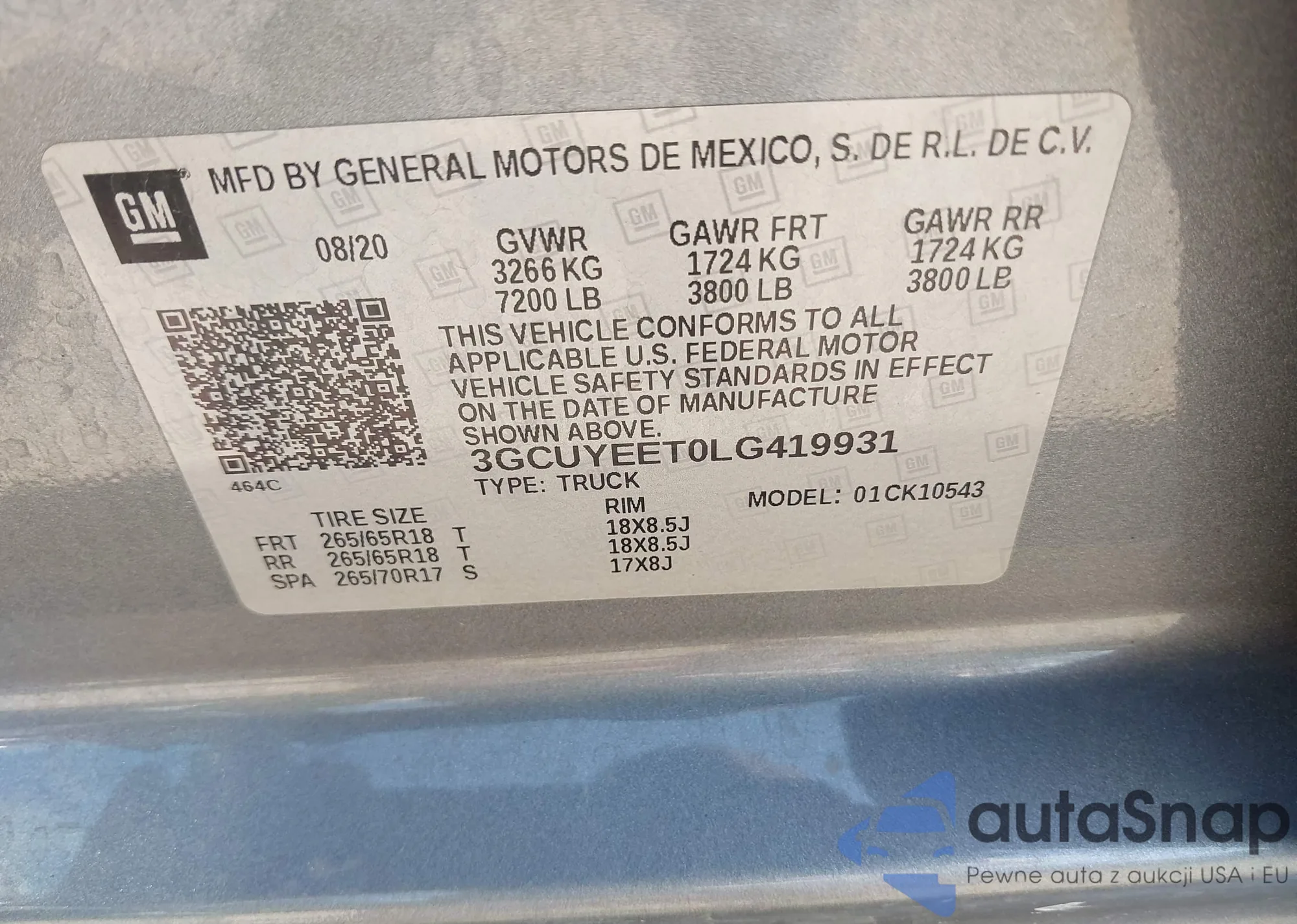 • VIN 3GCUYEET0LG419931