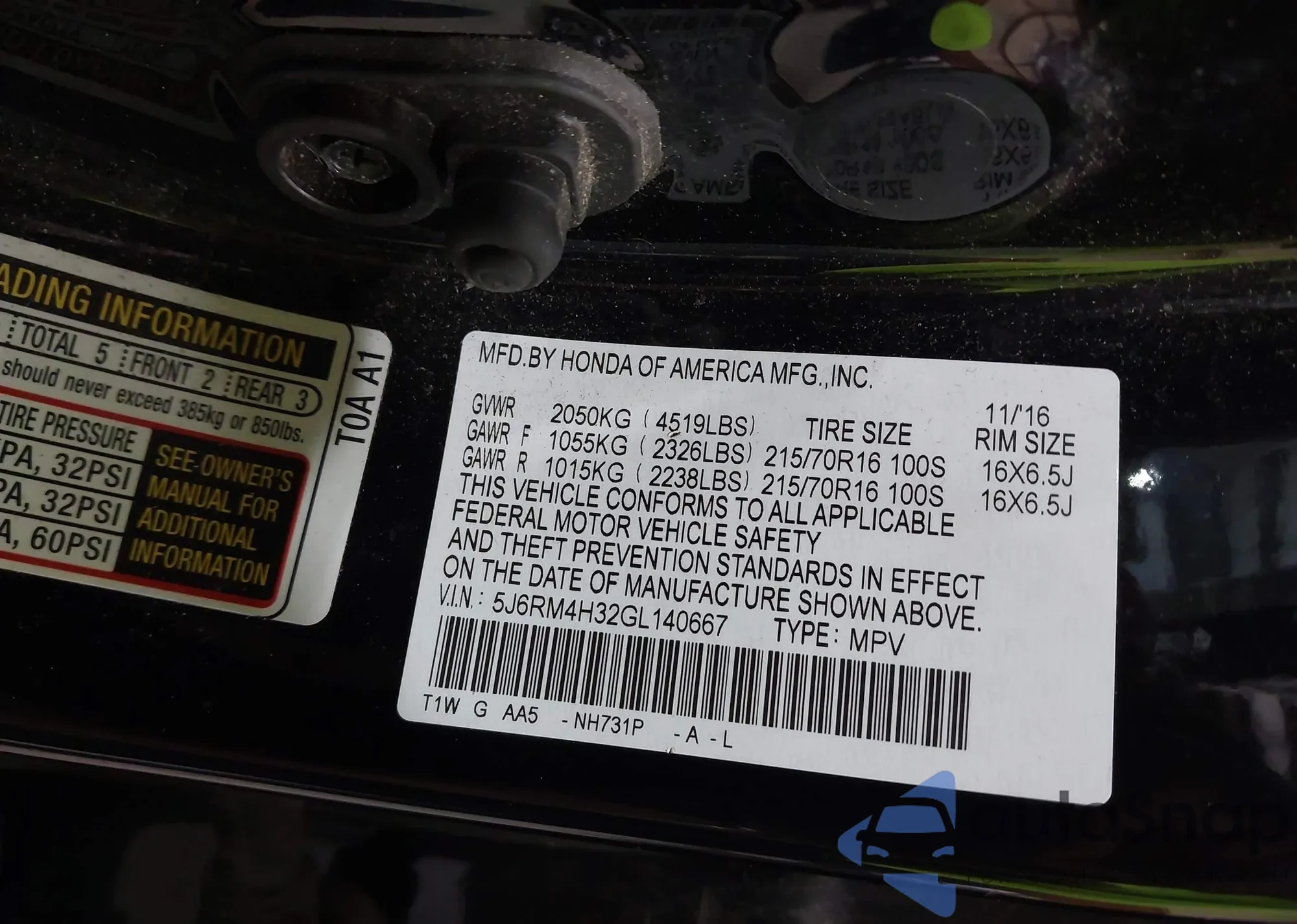 • VIN 5J6RM4H32GL140667