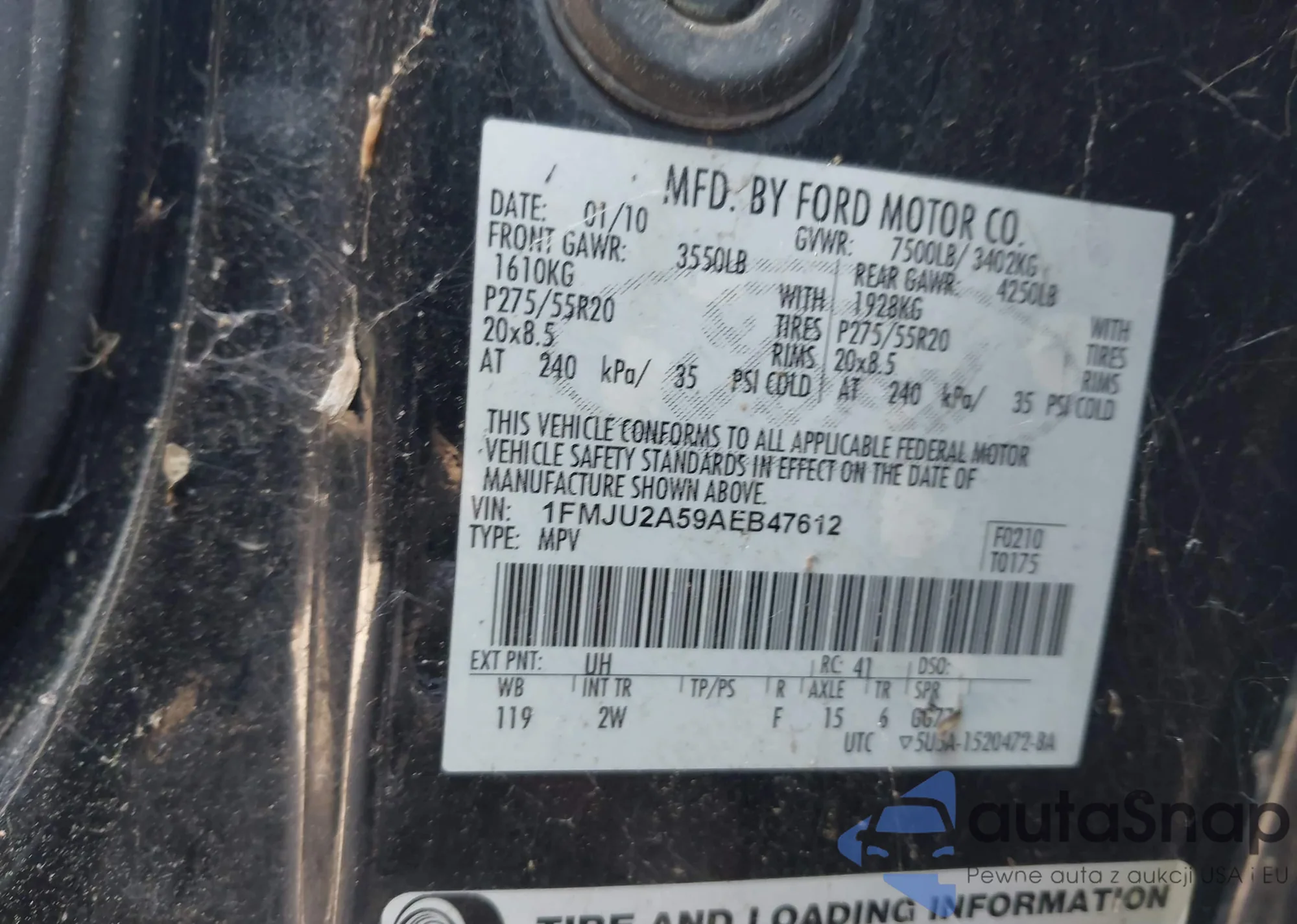 LOT: 43017115 VIN: 1FMJU2A59AEB47612