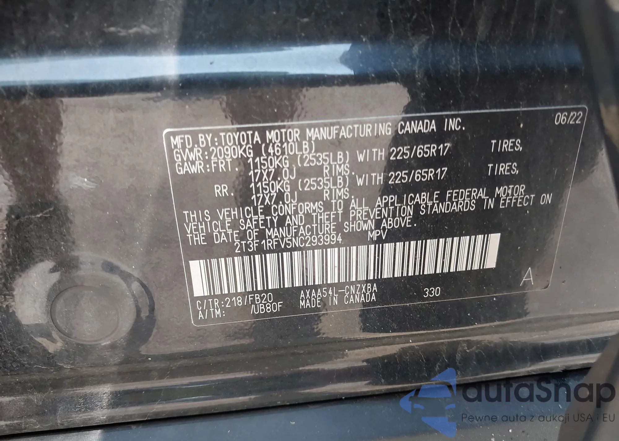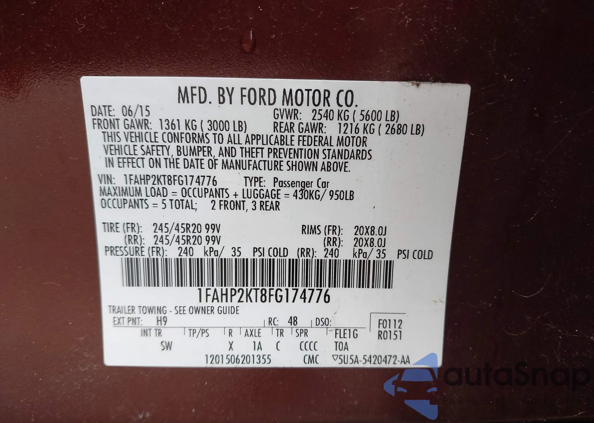 • VIN 1FAHP2KT8FG174776