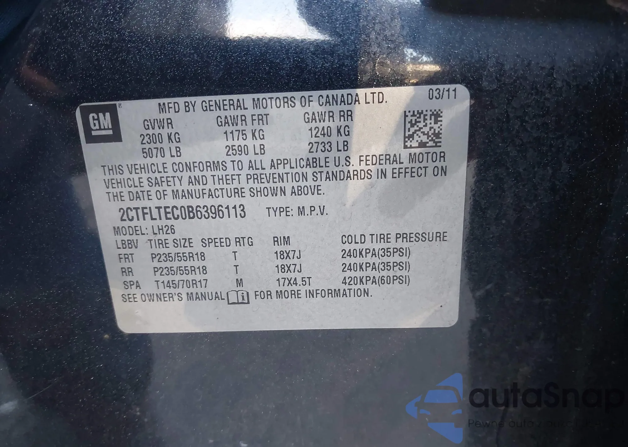 • VIN 2GNFLGEK8H6145768