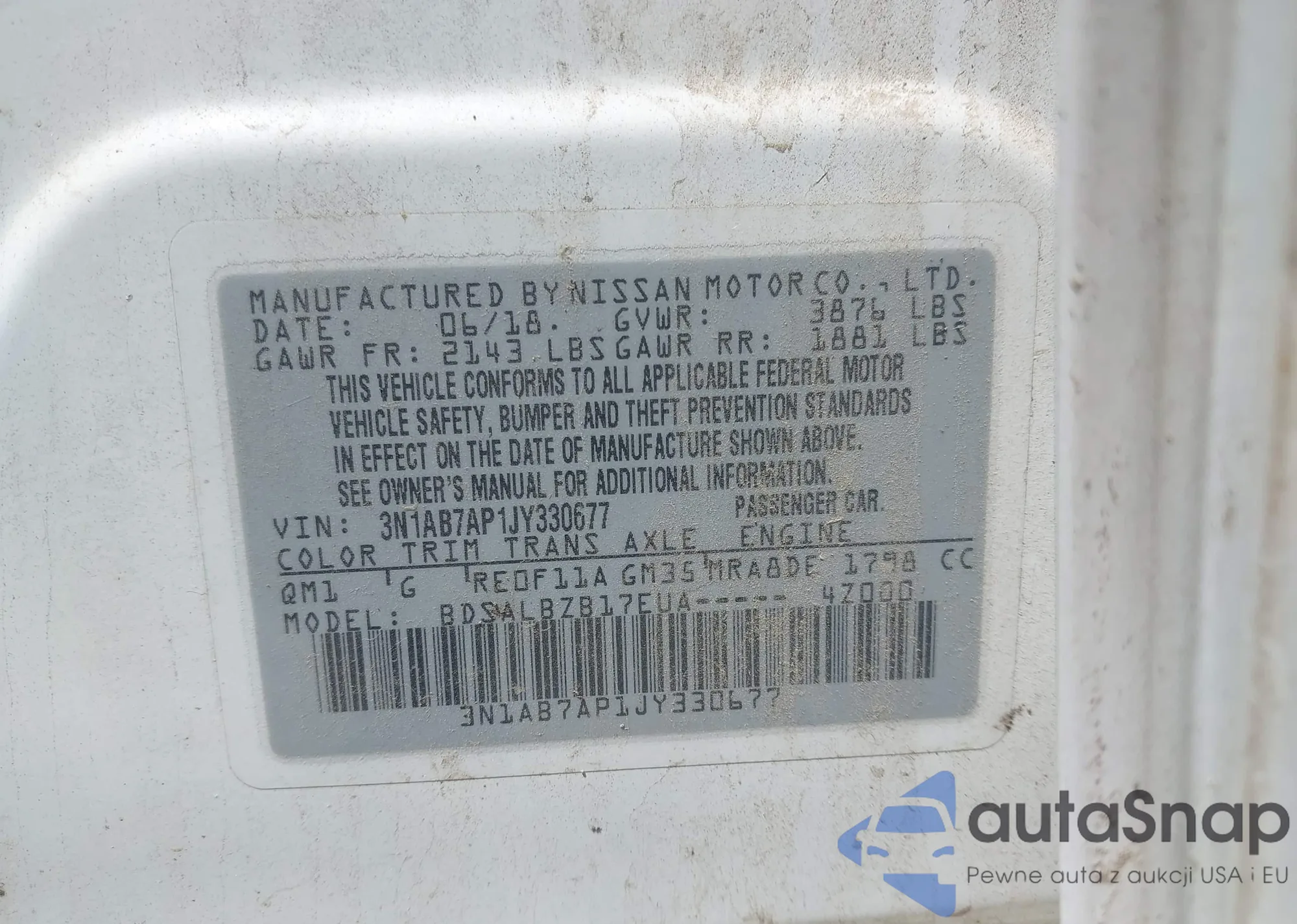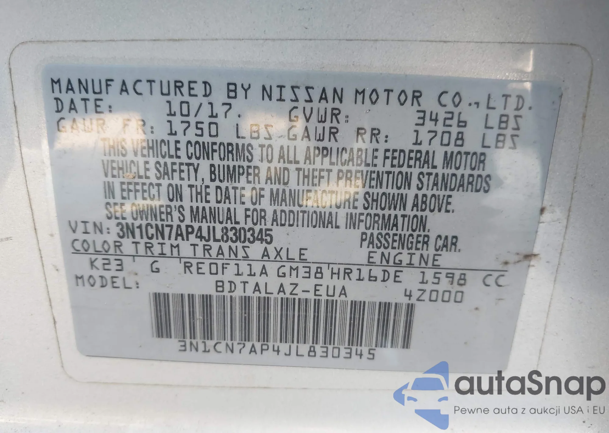 LOT: 42893297 VIN: 1N4AL3AP2GN371642