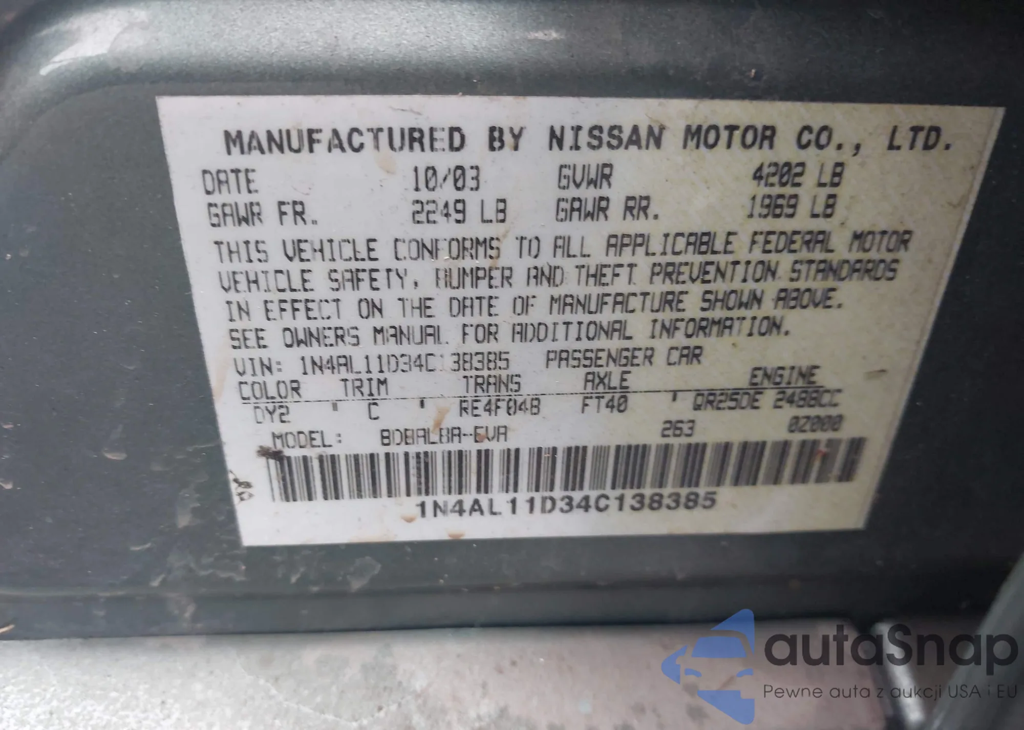 • VIN 1N4AL11D34C138385
