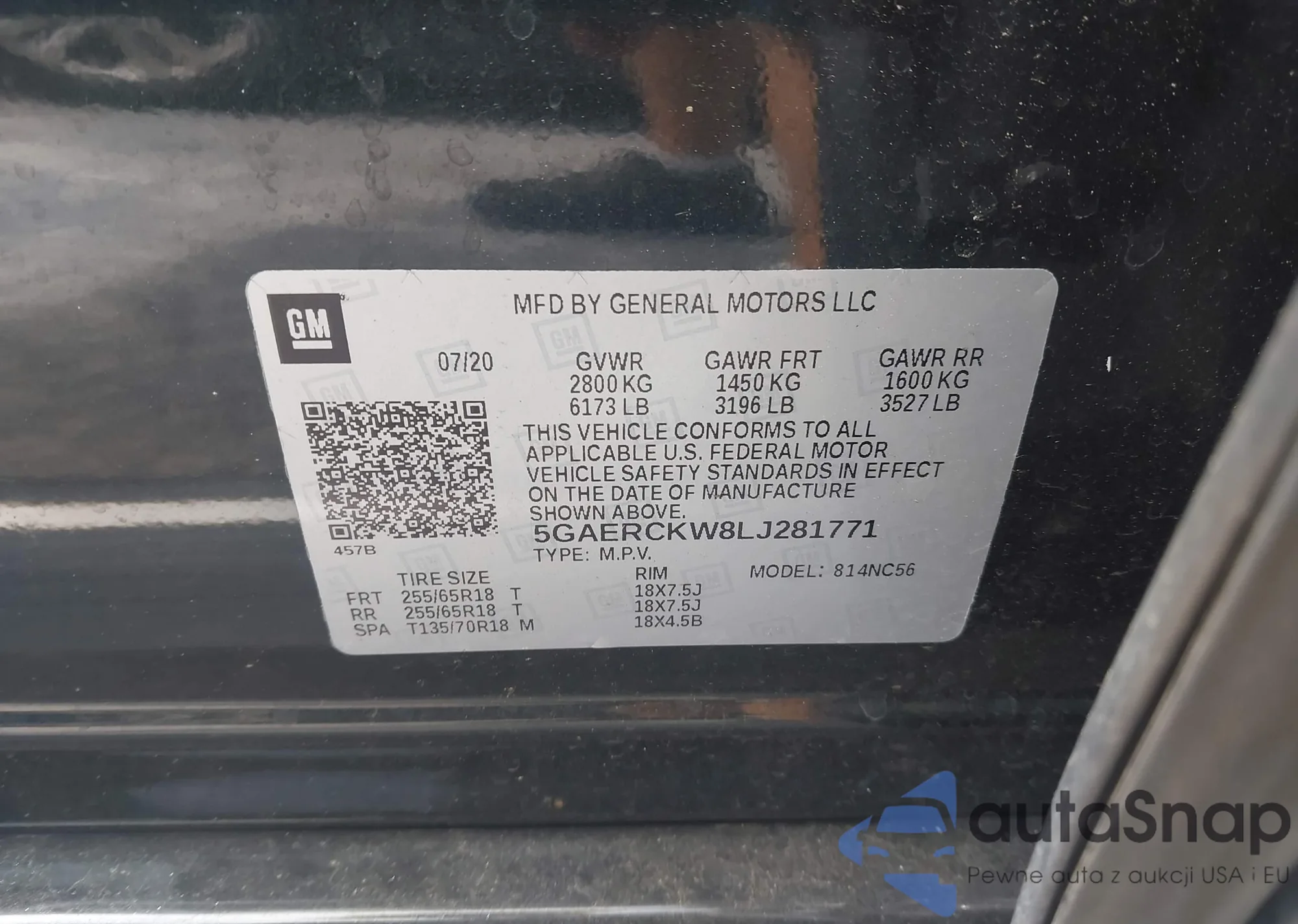 • VIN 5GAERCKW8LJ281771